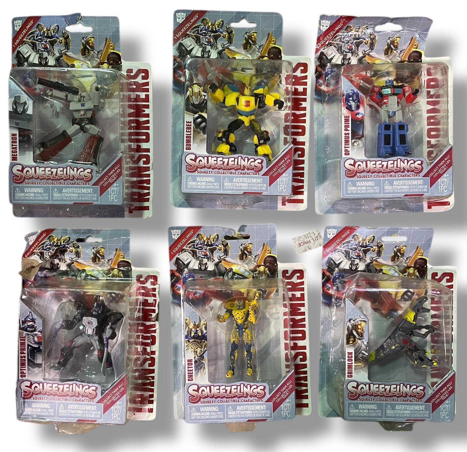Set of 6 - New Transformers Squeezelings Includes: Megatron, Bumblebee, Optimus Prime, Optimus Primal, Cheetor, Grimlock.