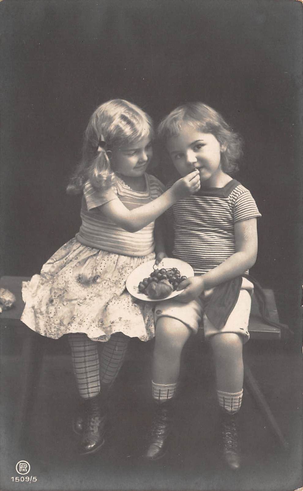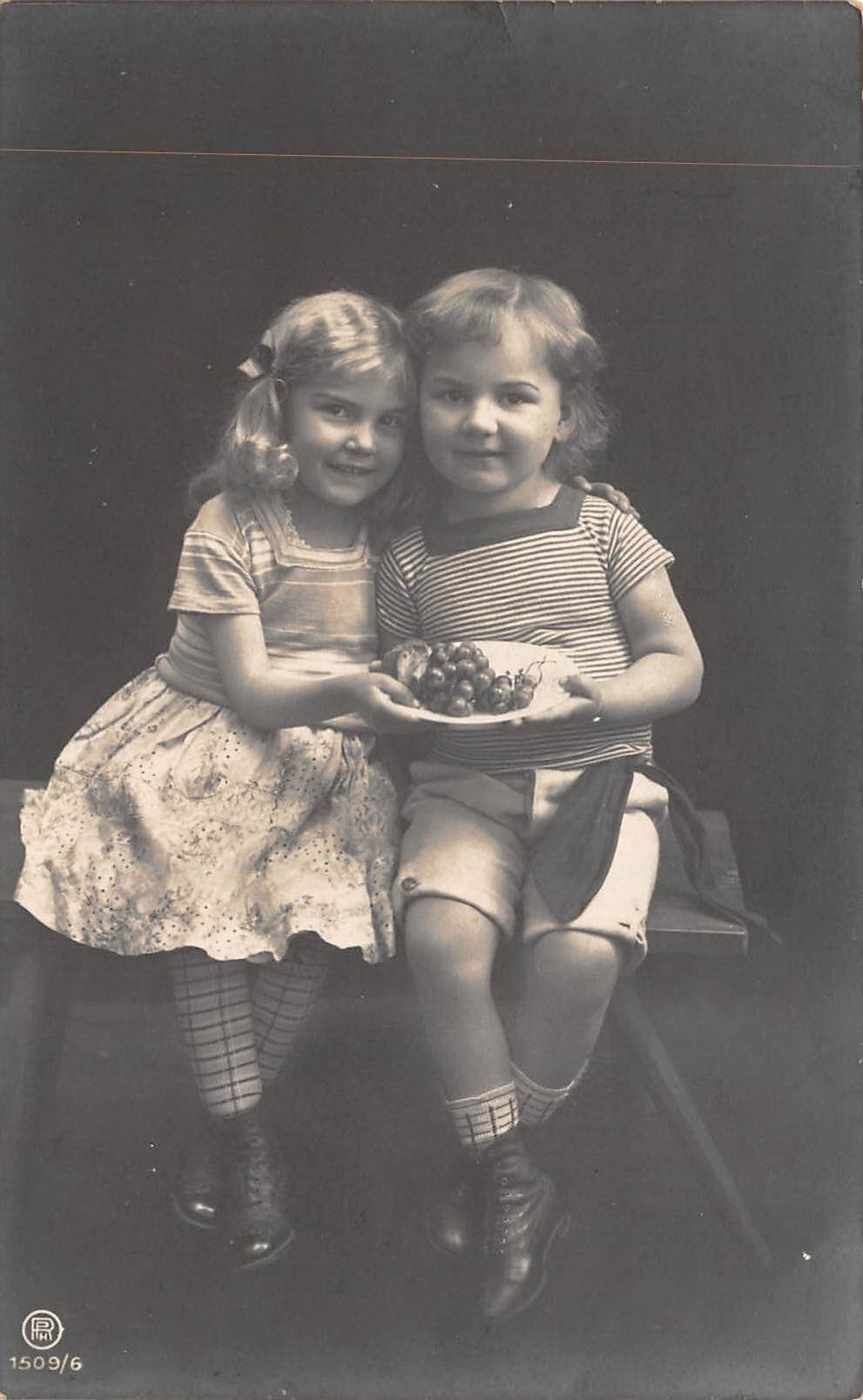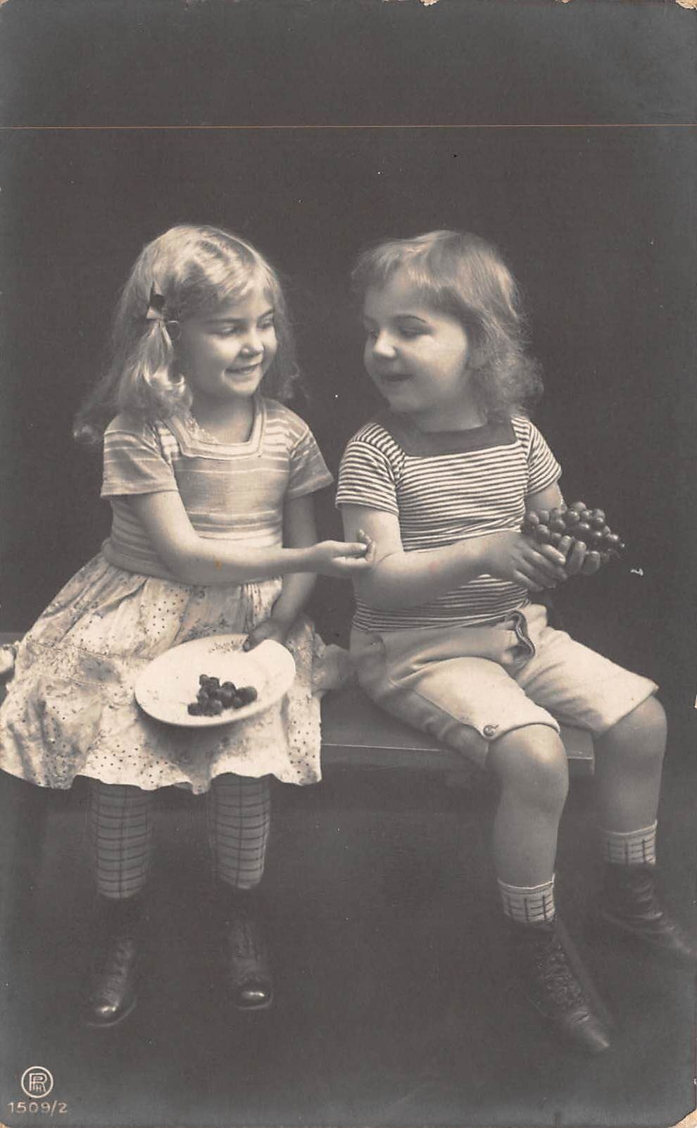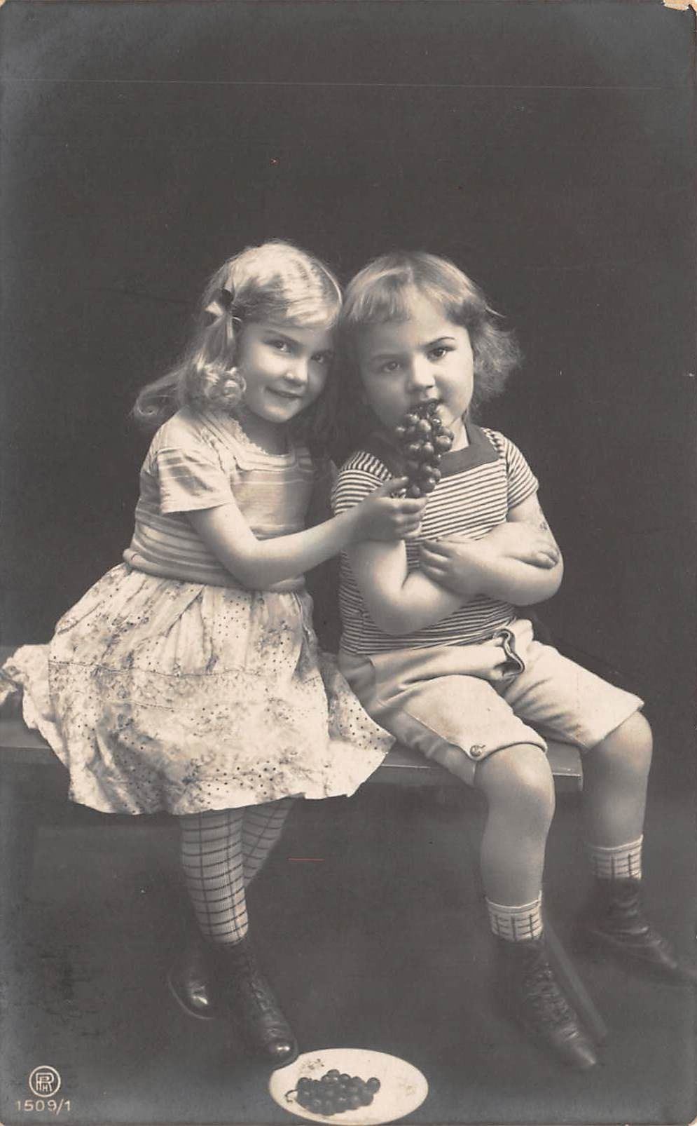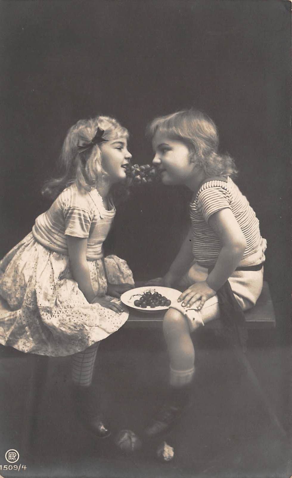 Set of 6 Real Photo Children Eating Grapes on Postcards