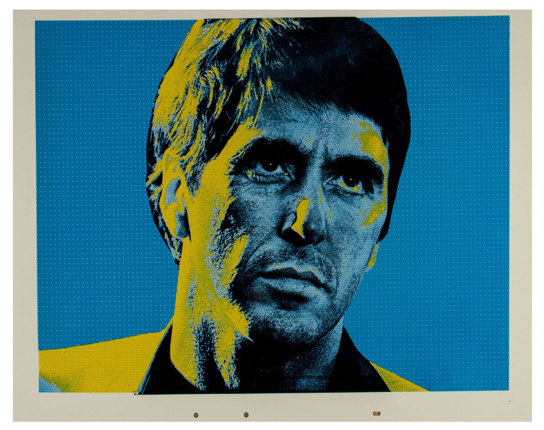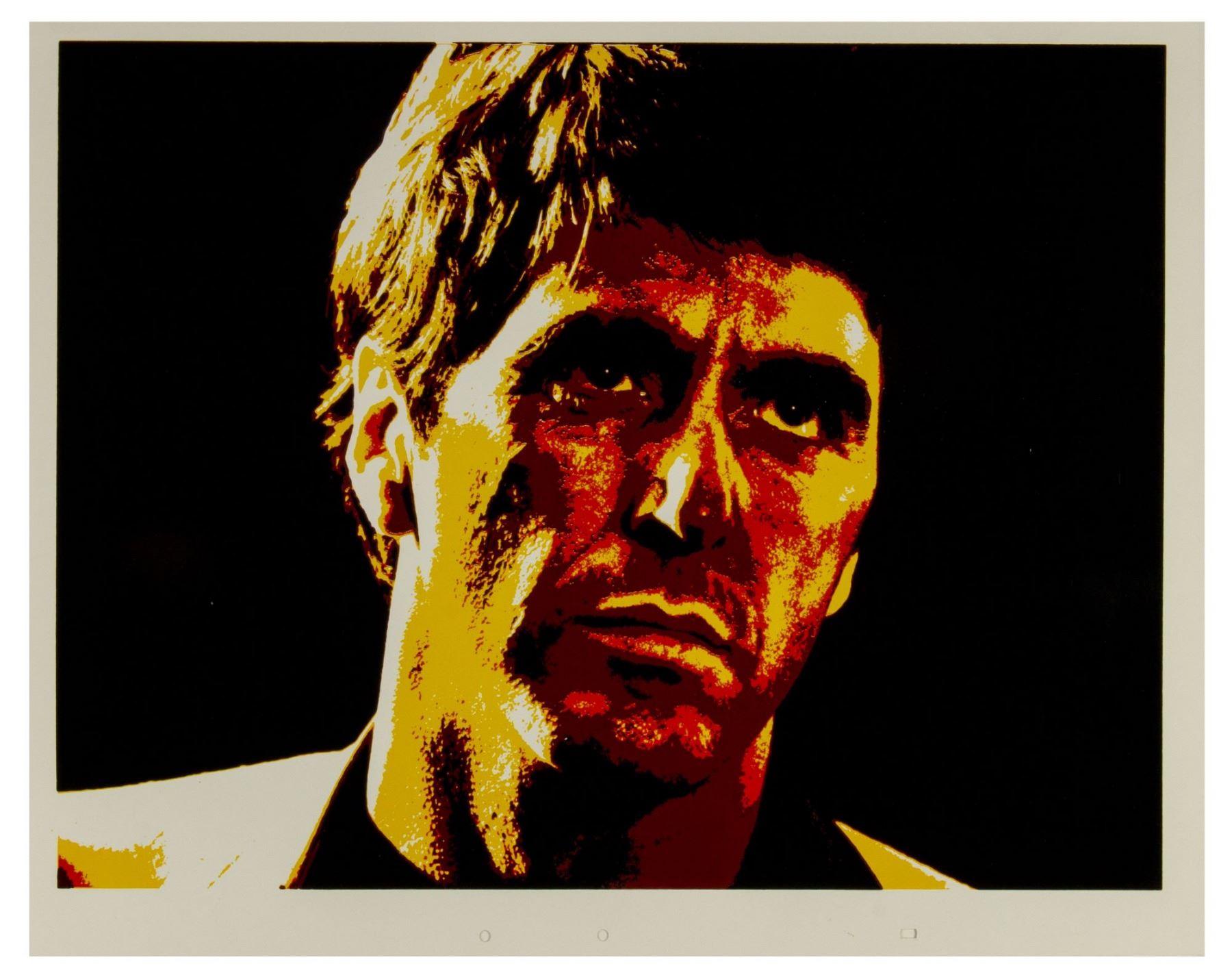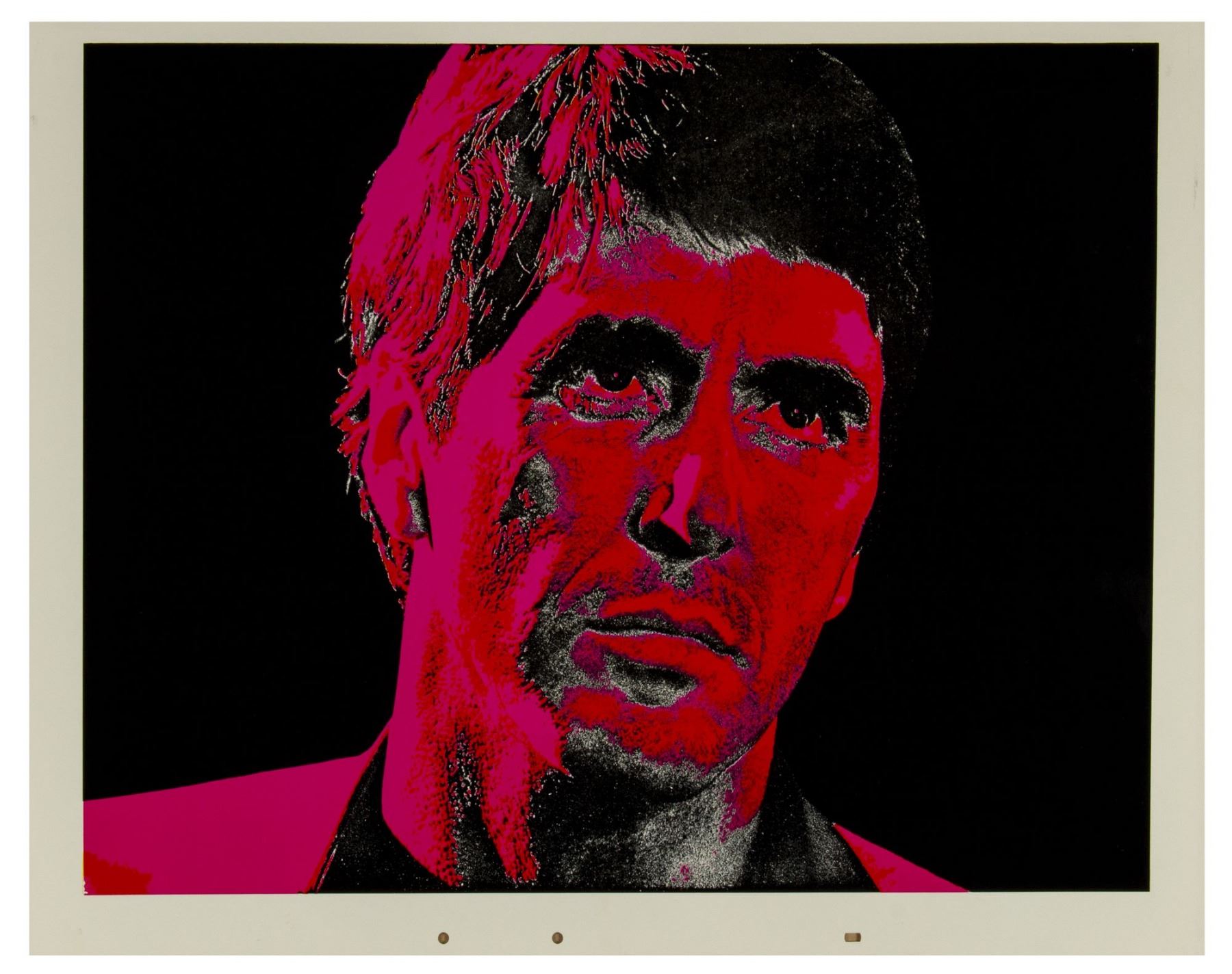 (Universal, 1983) A set of (6) large silkscreened prints featuring Al Pachino in his iconic role of Tony Montana in "Scarface". From the collection of Bill Wallen, these (6) high-quality silkscreened prints feature different color variants of the same image and were used in the creation of promotional materials for the film. Each print measures 20"x26" and the set is in overall very good condition with some minor wear throughout, including some bends in a few corners, some scuffs within the white margins, and some surface-wear. Each of these images are suitable for framing, as unique pop-art style versions of this iconic film character.