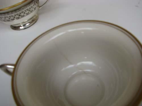 Condition: in generally good condition apart from some tarnish on silver, one cup has a 2.5 inch crack from rim to bottom, another cup has a repaired broken rim along 2.5 inches