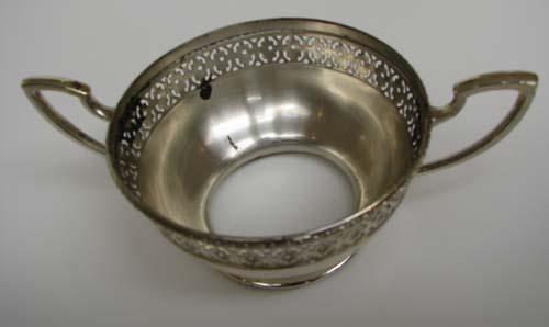 Description: Made by the Frank Whiting Company, each double handled pierced form hallmarked, with Lenox inserts