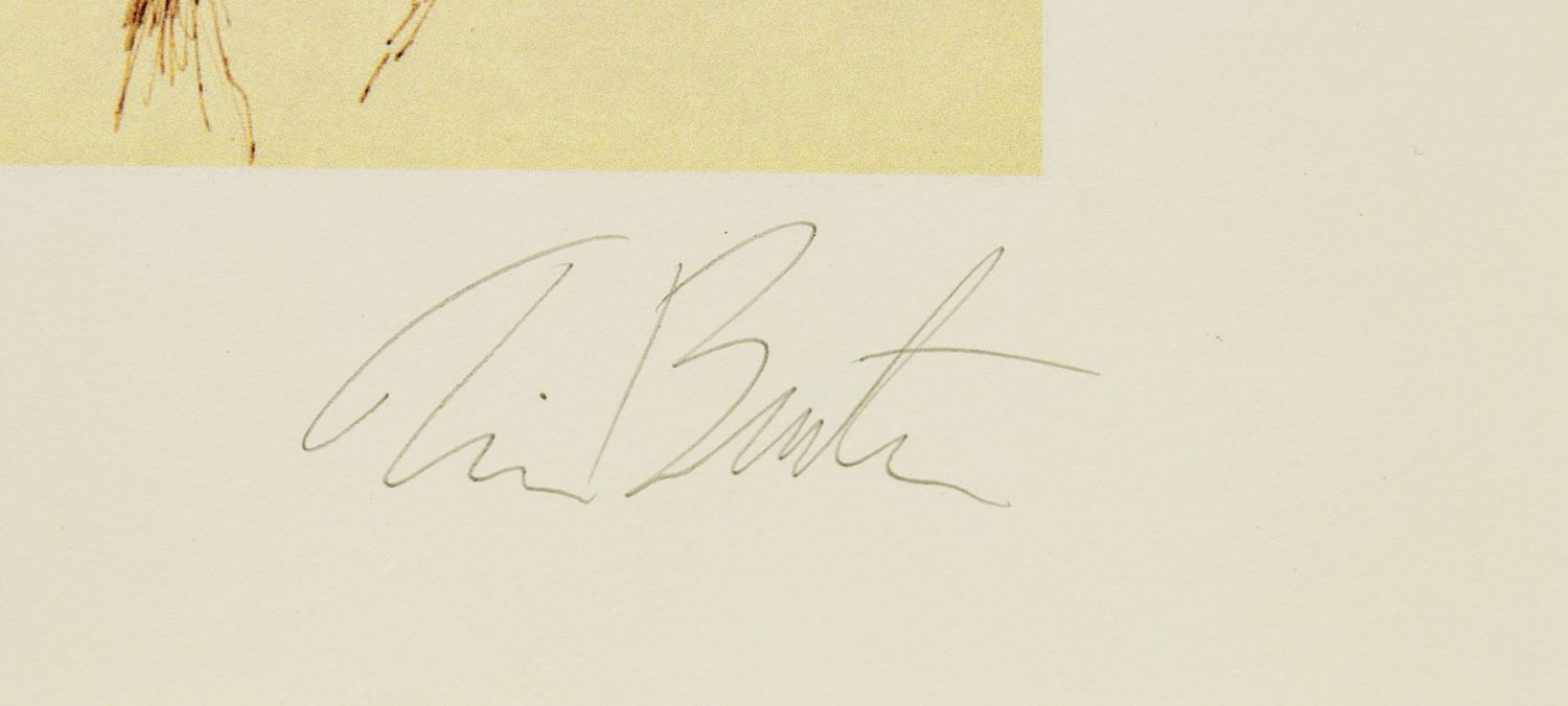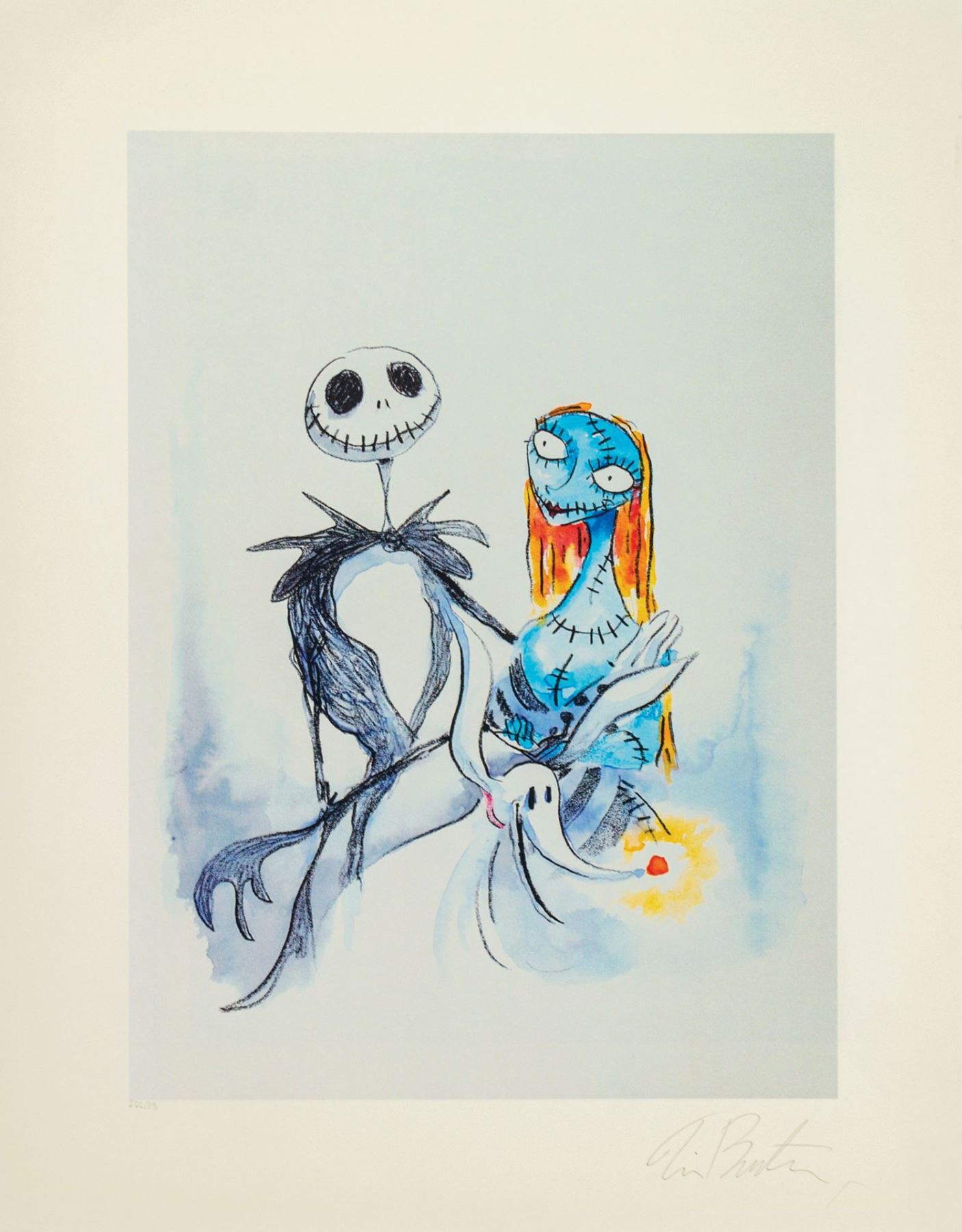 (Disney, 2005) A rare set of (6) The Nightmare Before Christmas giclees that have all been hand signed by Tim Burton. The giclees are number 266/315 and come in a unique The Nightmare Before Christmas hard case. The case measures 16.5"x20.75" and is in good condition with minor wear and scuffing from use. The giclees are in fine condition with minor wear to the edges.