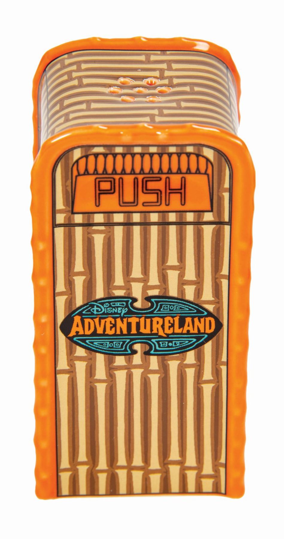 (Walt Disney World, 2016) A set of (6) retired ceramic salt and pepper shakers based on the popular themed trash cans of the Disney Parks. The set contains trash can shakers for Adventureland, Tomorrowland, Fantasyland, the Matterhorn Bobsleds, It's a Small World, and the Polynesian Resort. Each shaker measures approximately 2"x2" and 3.5" tall, and the set is in very fine unused condition.