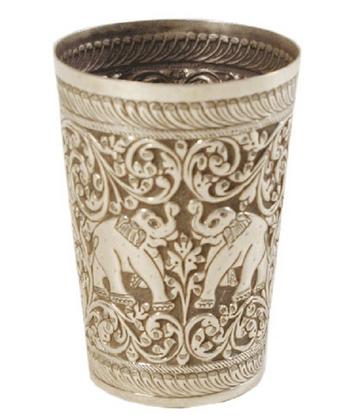 Set of 6 Tumblers Sterling Silver Exclusive -with Hand Made Heavily Decorated weighs 28.93 Troy Oz (900 Grams) Approximate "Timeless Treasure" by Shakuntalam Silvercraft.