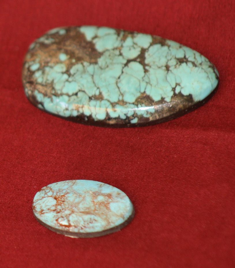 Set of 6 Turquoise Cabochons, Set of 6 Turquoise Cabochons, Two Large Silver Dollar size ,102 ct. each (Top), Four are Quarter sized, 27ct. 26ct., 17ct. and 12ct., Backed with Liquid Steel.