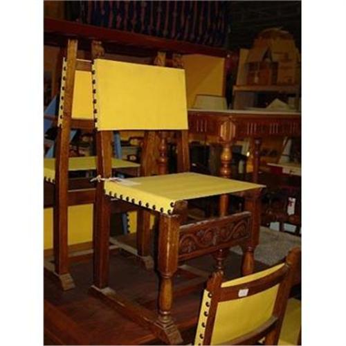 Set of 6 chairs seats are garnished with duck yellow fabric C.1920