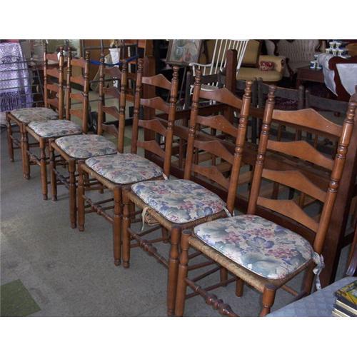 <table width="100%" border="0" cellspacing="0" cellpadding="4"><tr><td><em> </em></td></tr><tr> <td width="100%"> This set of 6 chairs would make beautiful kitchen chairs. Each chair is 42 inches tall, 20 wide, and 14 inches deep. The chairs are ladder backs. The seats are made of what looks to be twine or thin rope. Rush bottom? Each chair has a chair pad of lovely grape pods and grape leaves. Good condition. You are welcome to peruse our other listings. We will be glad to combine shipping for multiple purchases. </td></tr><tr> <td> </td></tr><tr> <td>Reference #: RAF_3540</td></tr><tr><td>Condition:Good</td></tr><tr><td>Year:20th c</td></tr><tr><td>Title:Set of 6 ladderback twine rope cane rush bottom</td></tr><tr><td>Location:Marion, SC</td></tr></table>
