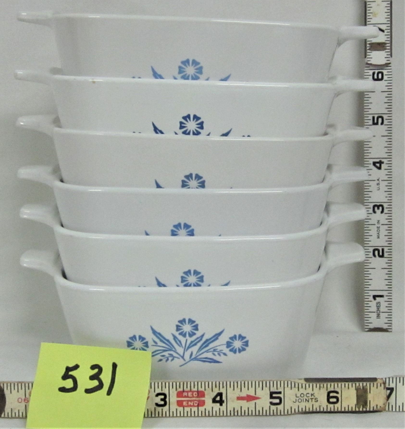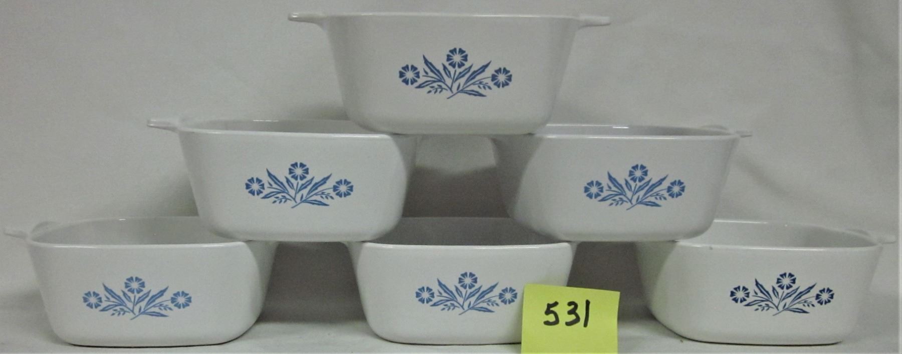 Set of 6 vintage 3-cup 700 ml Corningware Blue Corn flower serving dishes