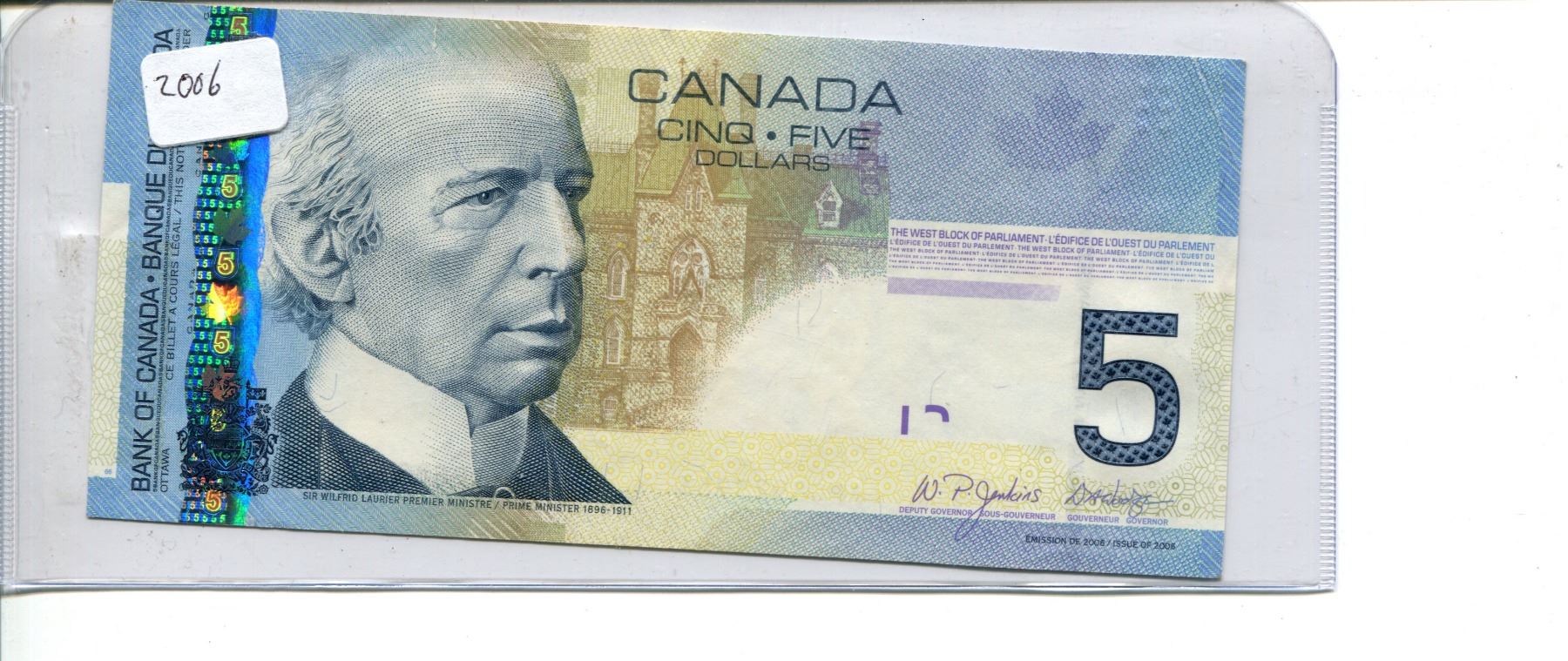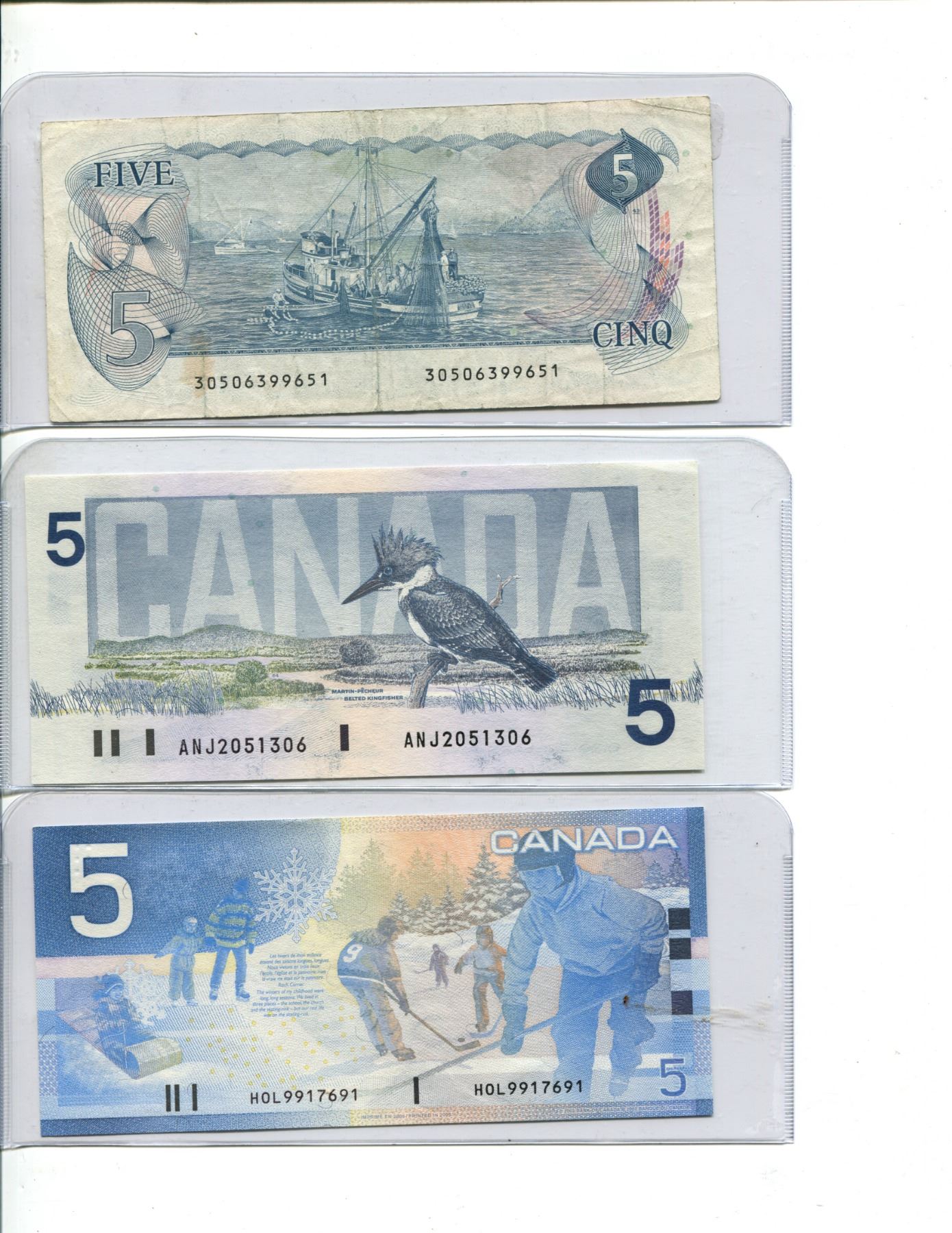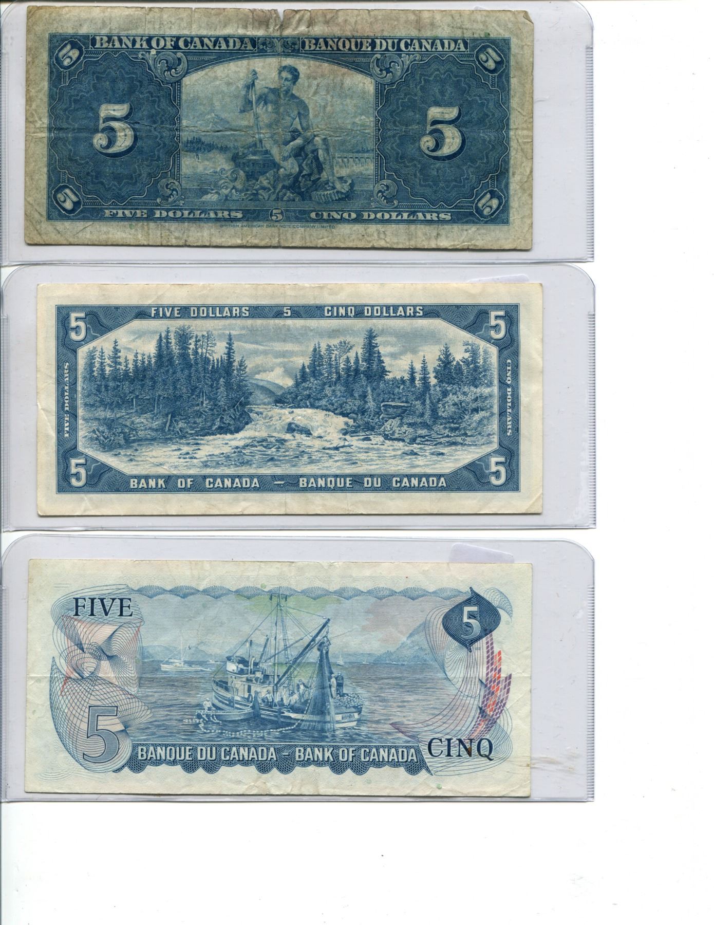 Set of (7) Canadian Five Dollar Bills (Years: 1937, 1954, 1972, 1979, 1986, 2002, 2006)