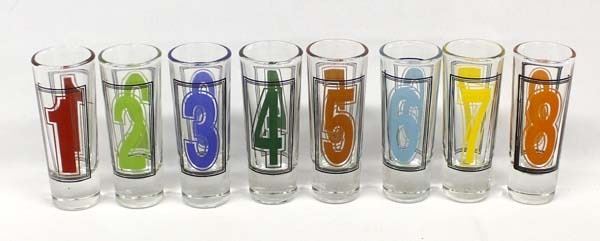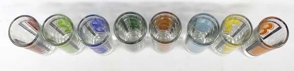 Set of 8 Vintage Billiard Shot Glasses, measures 4''H