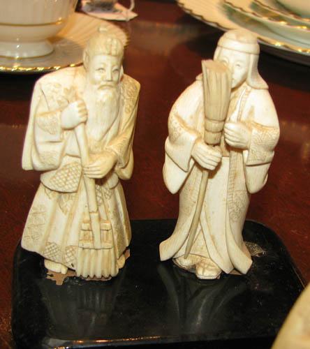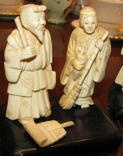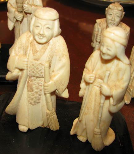 Title: Set of 8 Carved Ivory Figurines carrying brooms