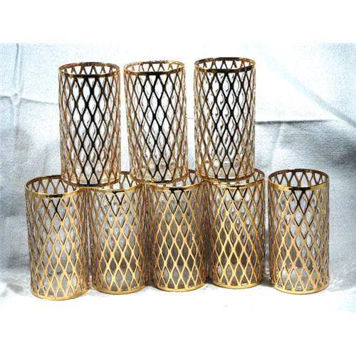 Set of 8 Gold & Glass Tumbers. These are heavy glass with a criss cross gold pattern.