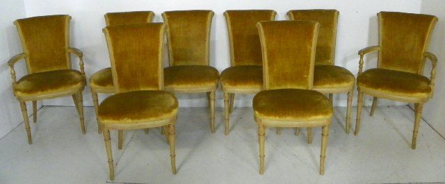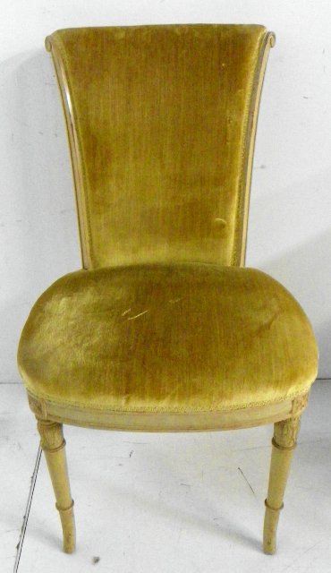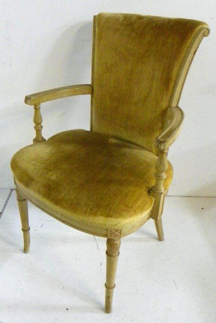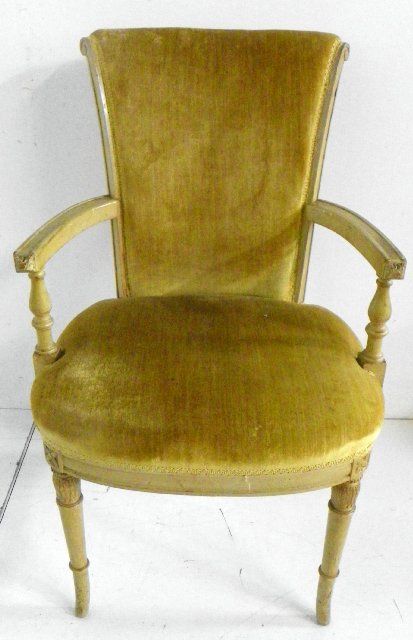 With gold upholstery, cream color frame. 2 arm, 6 sides. Please read our terms of sale.