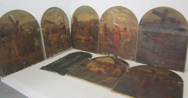 6 are on wood backing, 1 is on broken backing, & 1 is unframed. Approx. 54.5" x 42.5". Please read our terms of sale.