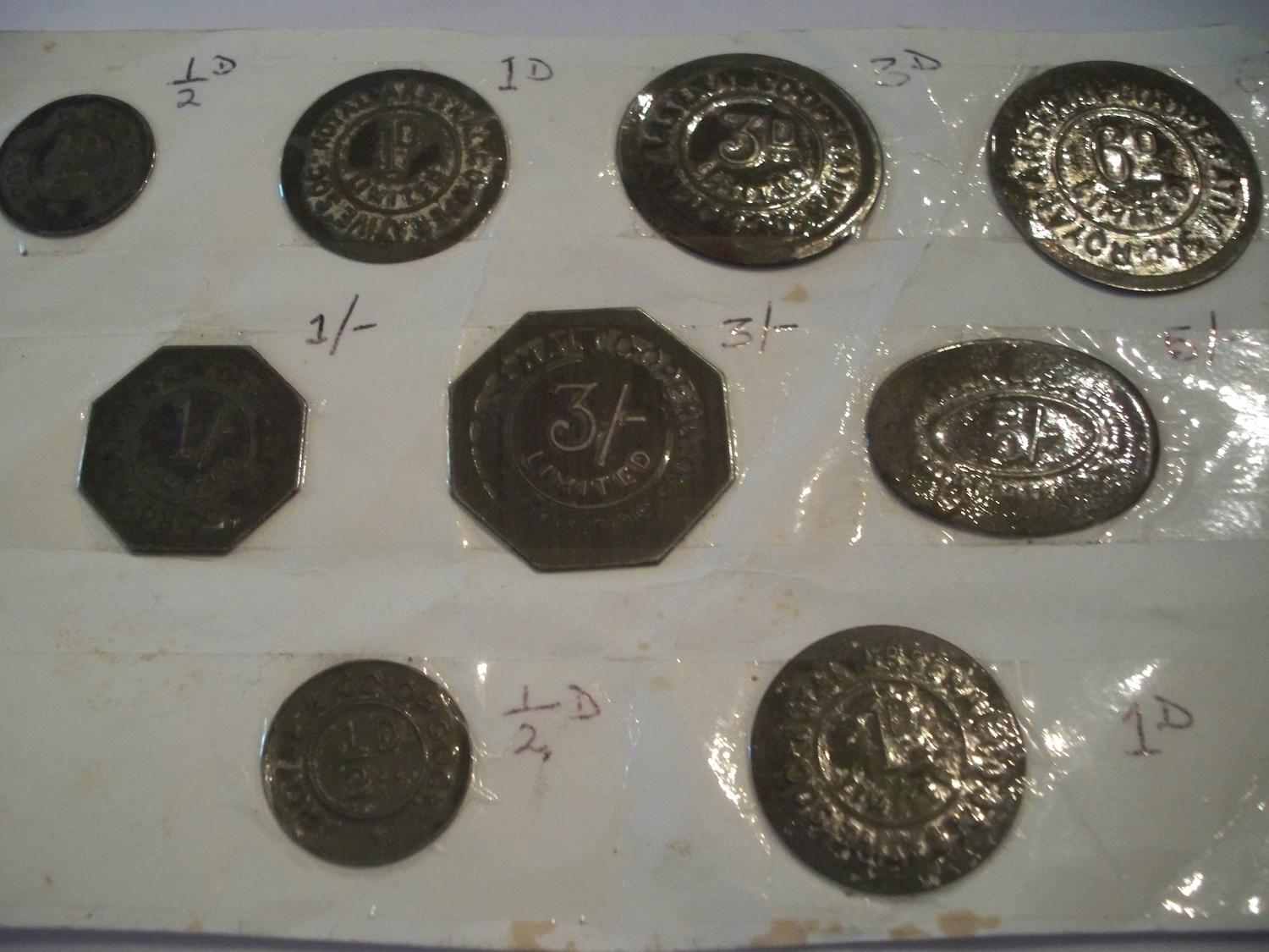 Set of 9 Great Britain Royal Arsenal Cooperative SOC Tokens, 1/2D to 6D + 1/,3/,5/