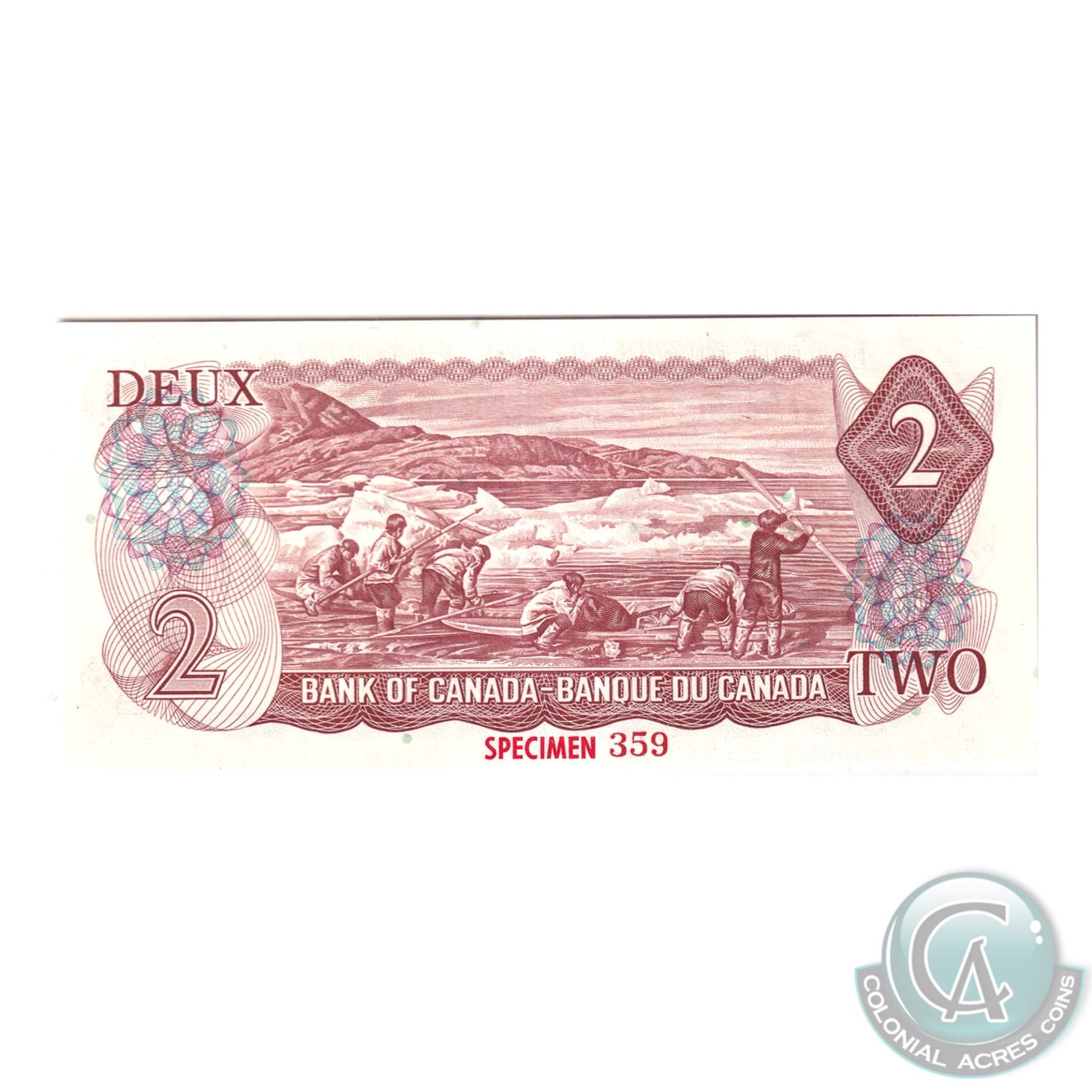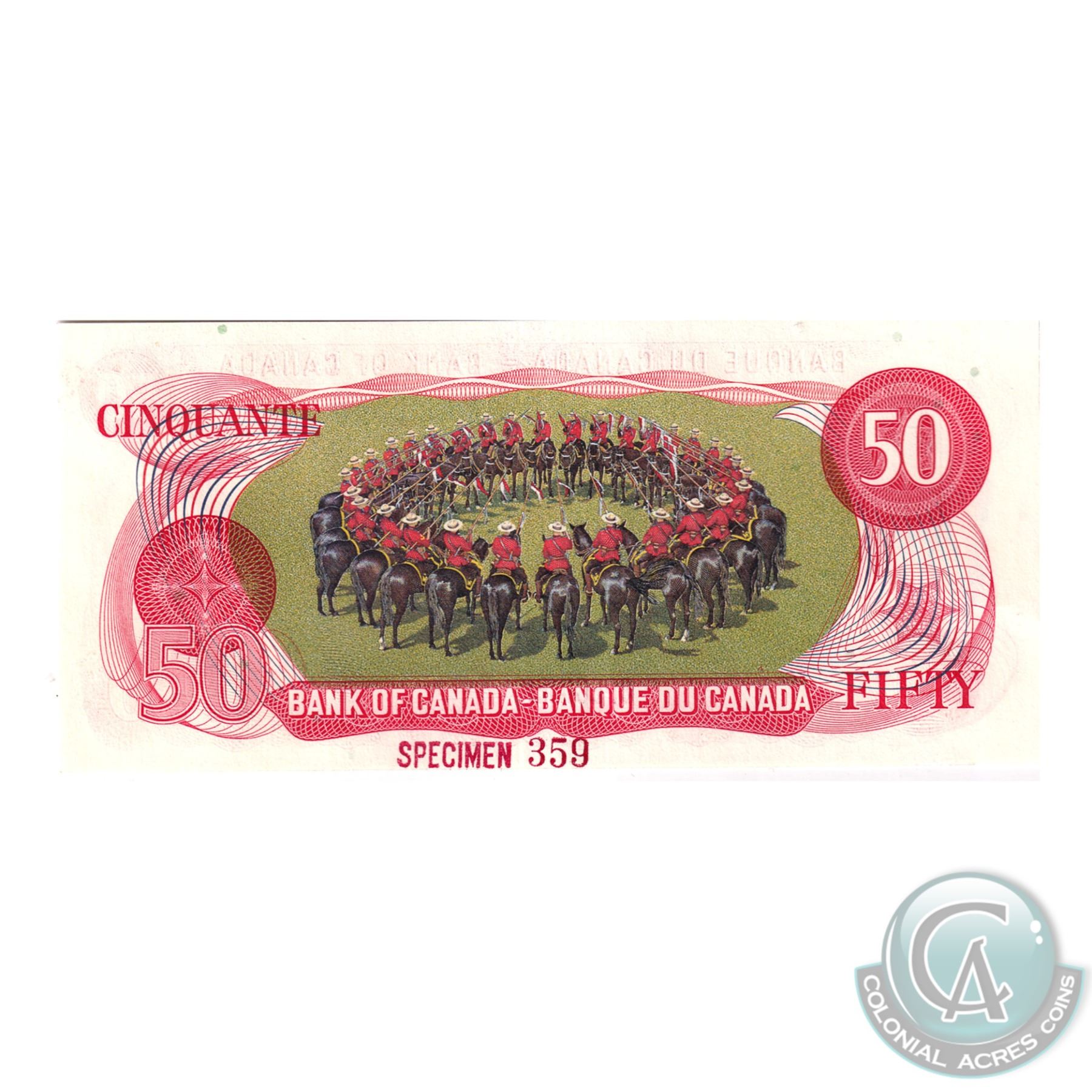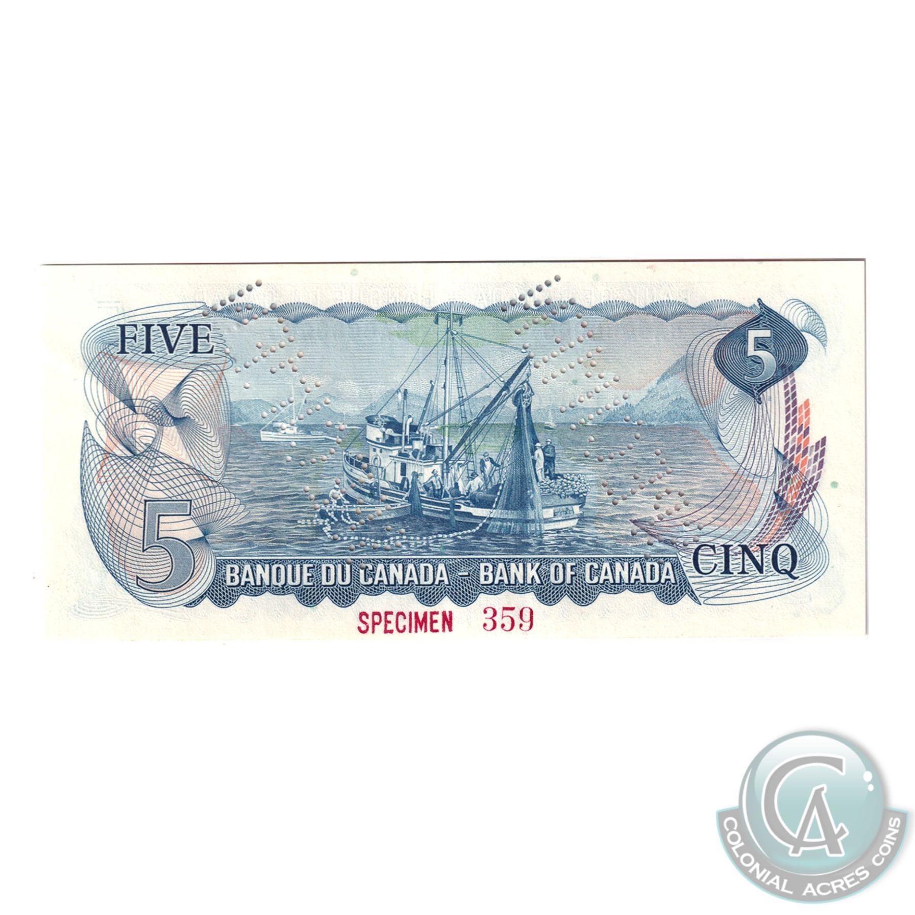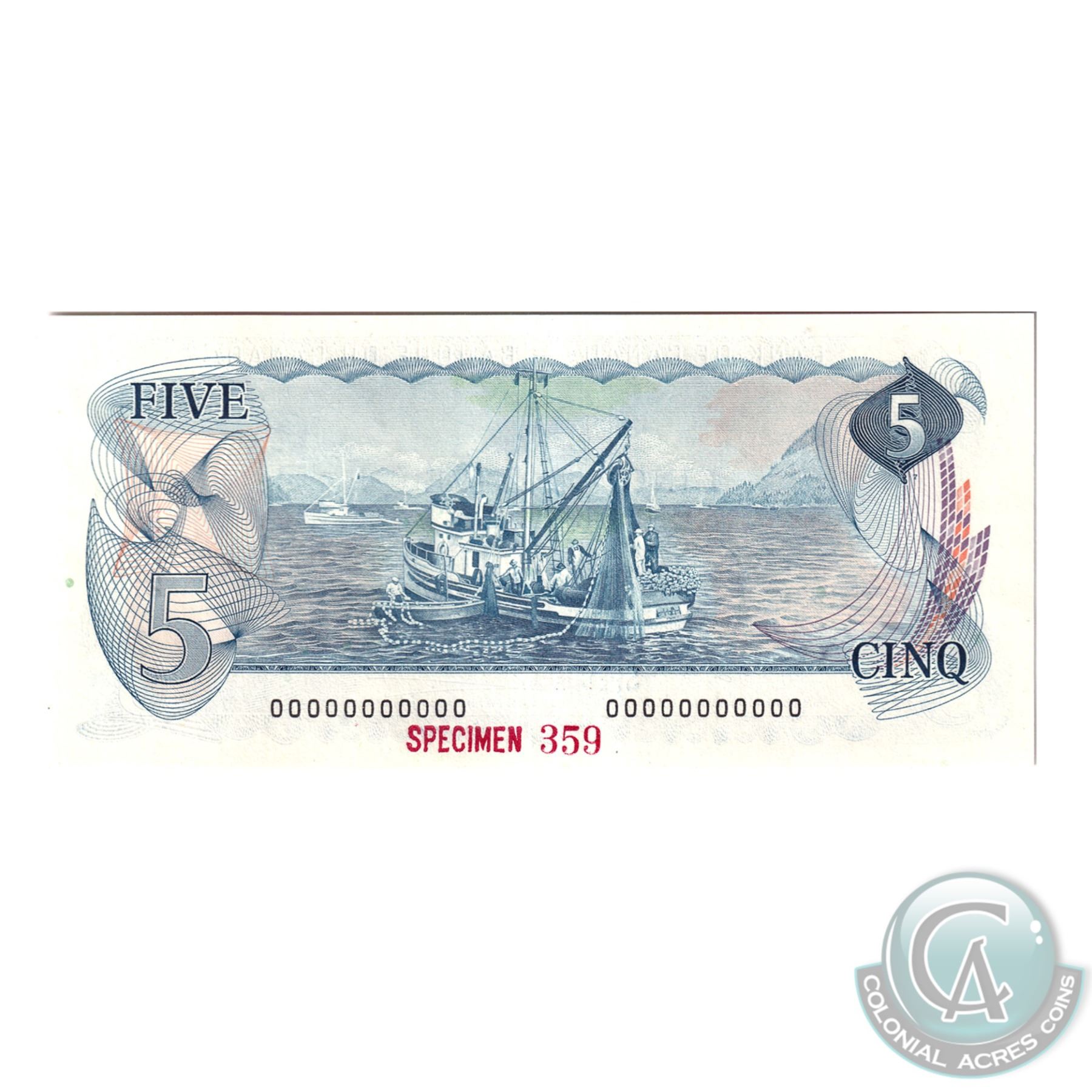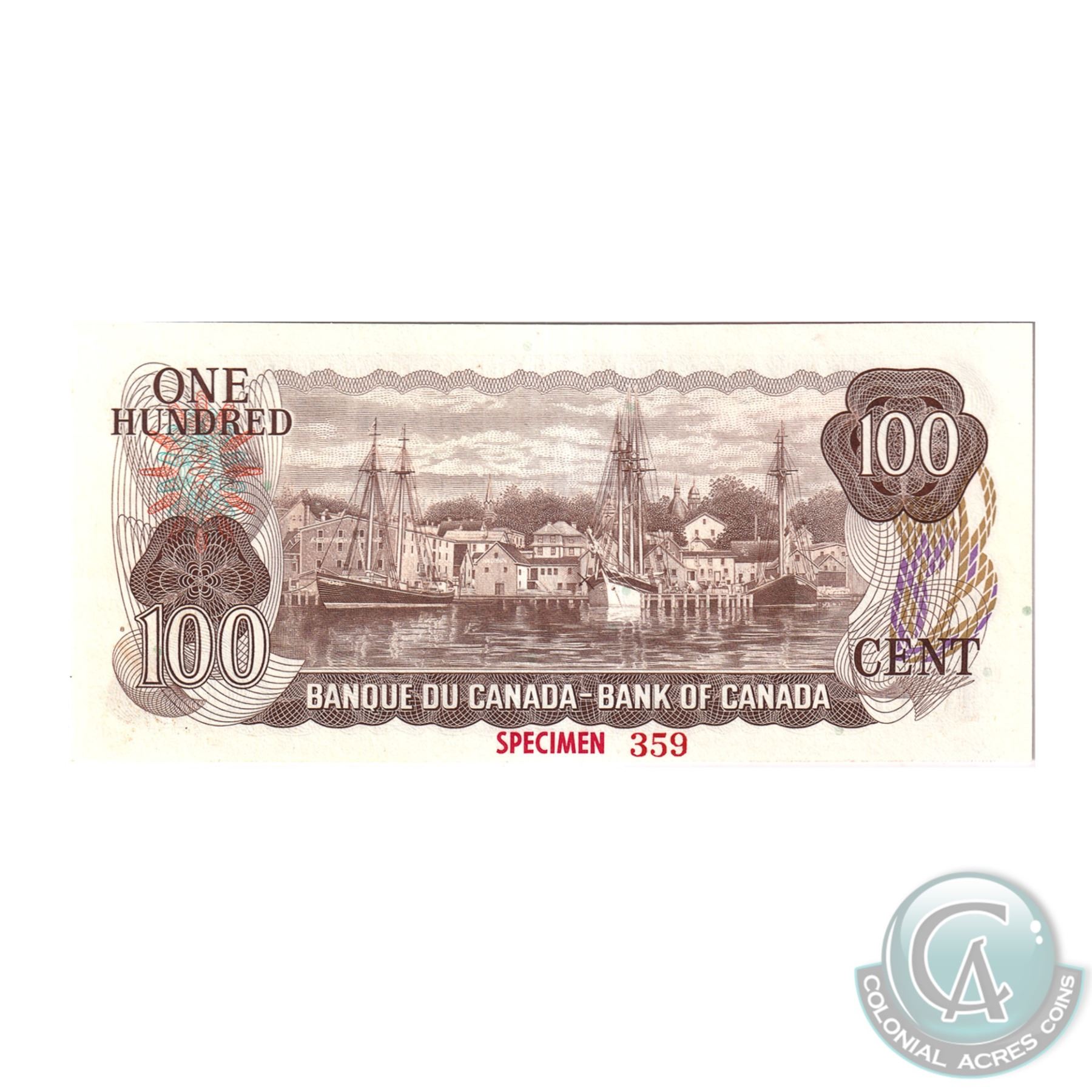 Set of 9 Matching SPECIMEN Notes of the 1969-1979 Multicolour Issues (Set#359). All PMG Certified UNC-65 & UNC-66 EPQ ($1, $2, 2x $5, $10, 2x $20, $50, $100). Issued in the November 1999 Bank of Canada Sale. The Set includes: 1973 $1, BC-46aS Lawson-Bouey AA Prefix (Gem UNC-66 EPQ), 1974 $2, BC47aS Lawson-Bouey BA Prefix (Gem UNC-66 EPQ), 1972 $5 BC-48aS Bouey-Rasminsky CA Prefix (Gem UNC-65 EPQ), 1971 $10 BC-49aS, Beattie-Rasminsky DA Prefix (Gem UNC-66 EPQ), 1969 $20 BC-50aS, Beattie-Rasminsky EA Prefix (Gem UNC-65 EPQ), 1975 $50 BC-51aS Lawson-Bouey HA Prefix (Gem UNC-66 EPQ), 1975 $100 BC-52aS, Lawson-Bouey JA Prefix (Gem UNC-66 EPQ), 1979 $5 BC-53aS, Lawson-Bouey '000' Prefix (Gem UNC-65 EPQ), & 1979 $20 BC-54aS, Lawson-Bouey '000' Prefix (Gem UNC-66 EPQ). A great Investment opportunity for a set that is seldom offered for sale.