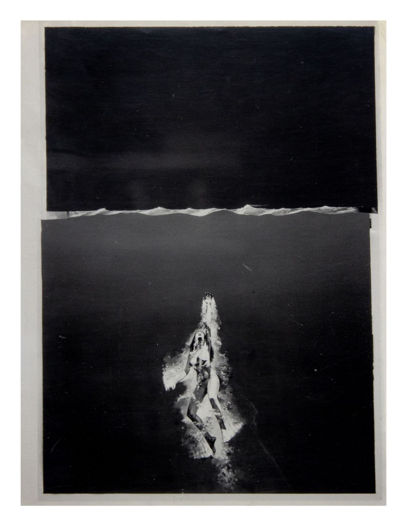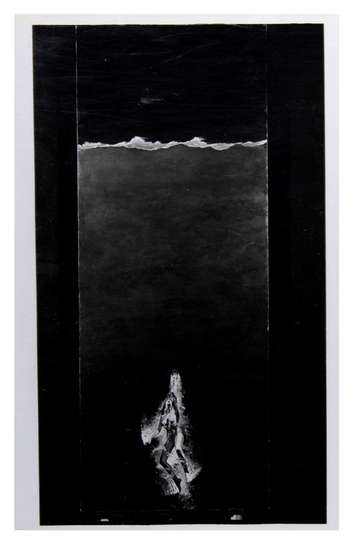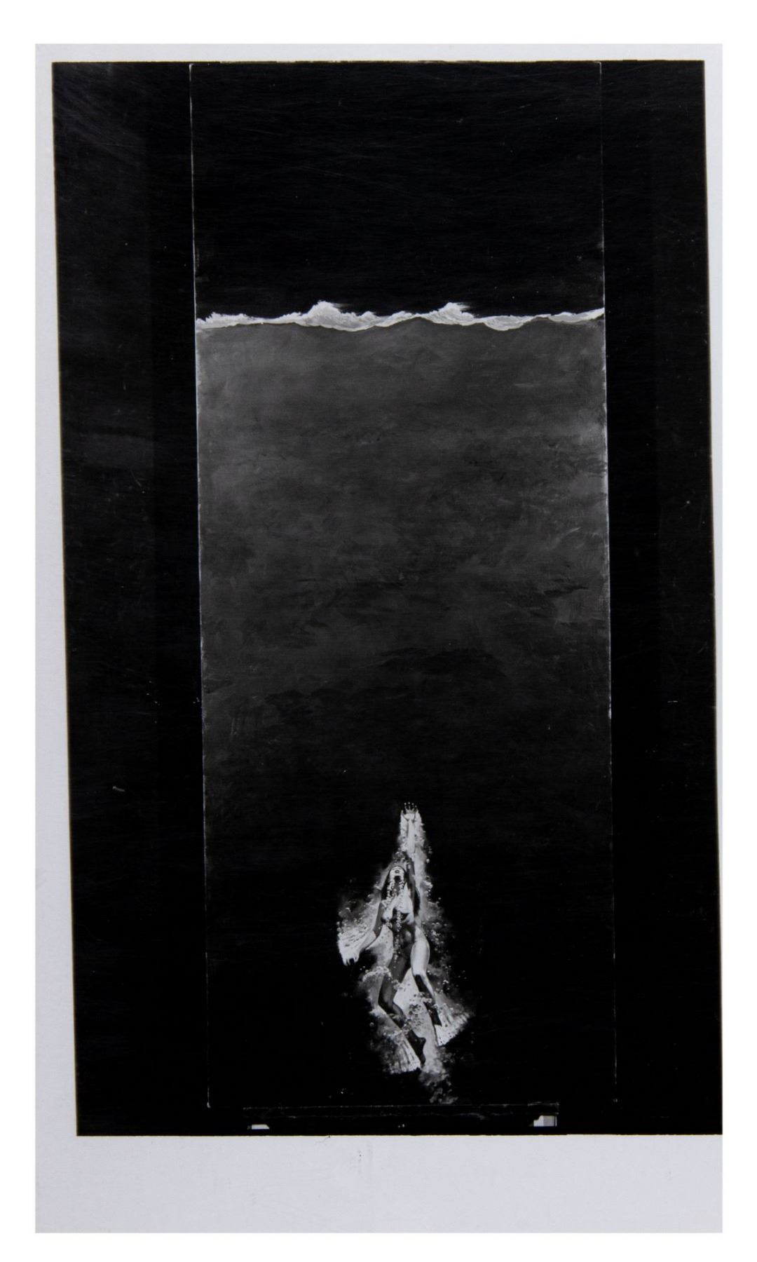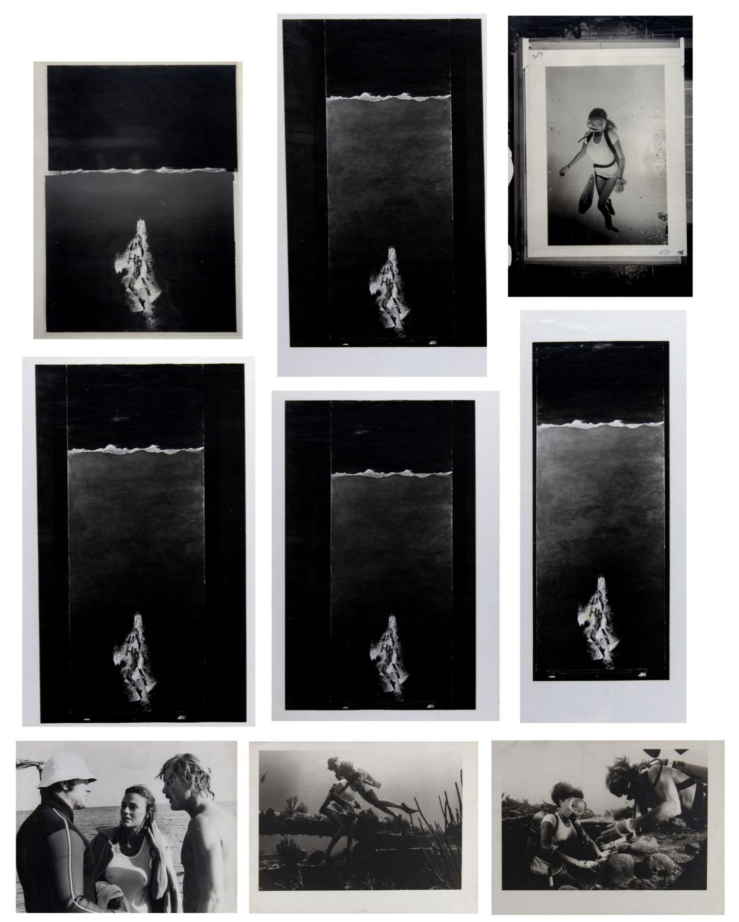 (Columbia, 1977) A set of (9) prints of artwork and photo imagery from "The Deep" by Columbia Pictures. The set includes (5) prints relating to development artwork for the film's poster, and (4) prints featuring photo imagery of Jacqueline Bisset from her opening scene in the film. The prints range in size from 11"x14" to 24"x17" and the overall condition is fair to good, with some expected creasing and wear from significant use during the creation of promotional materials for the film.