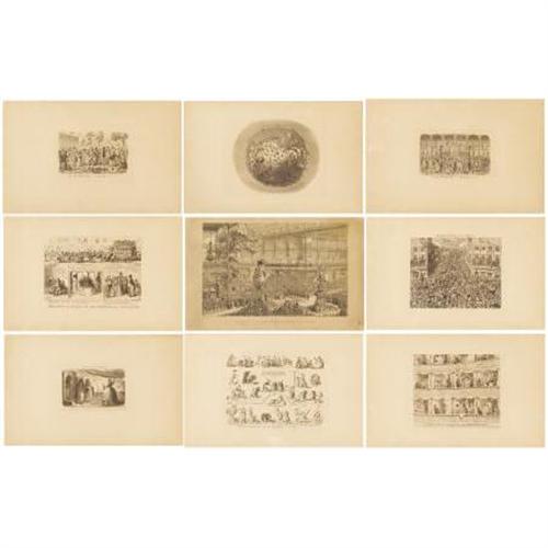 <B>David Bogue and Cruikshank</B></I><BR><I>1851 Exposition</B></I><BR>Set of 9 original lithographs<BR>12-1/2 x 19-1/2 inches (31.8 x 49.5 cm)<BR>Varied sizes <BR> <BR><BR><b>Shipping:</b> Requires 3rd Party Shipping (<a target="_blank" href="http://www.heritageauctions.com/common/shipping.php">view shipping information</a>)