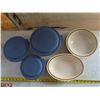 Set of Anchor hocking bowls with lids and 2 Mountain wood collection stoneware