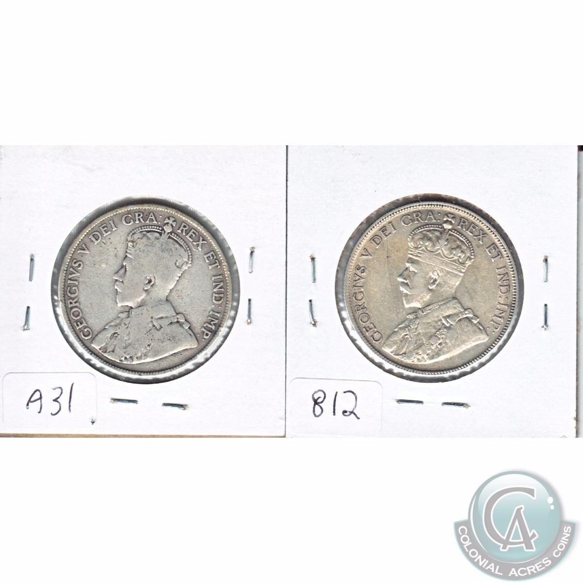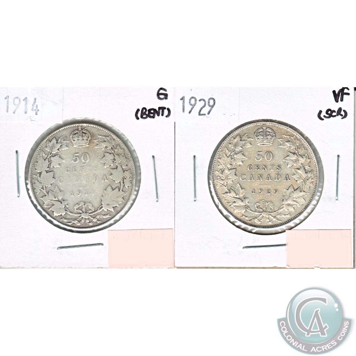Set of Canadian Silver 50 cents. Dated 1914 & 1929. 2pcs