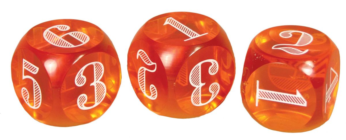 Set of Catalin Ball Dice. Used in Hyronemus tubs or large Chuck-a-Luck cages. Excellent condition. 1 1/4 inch each.