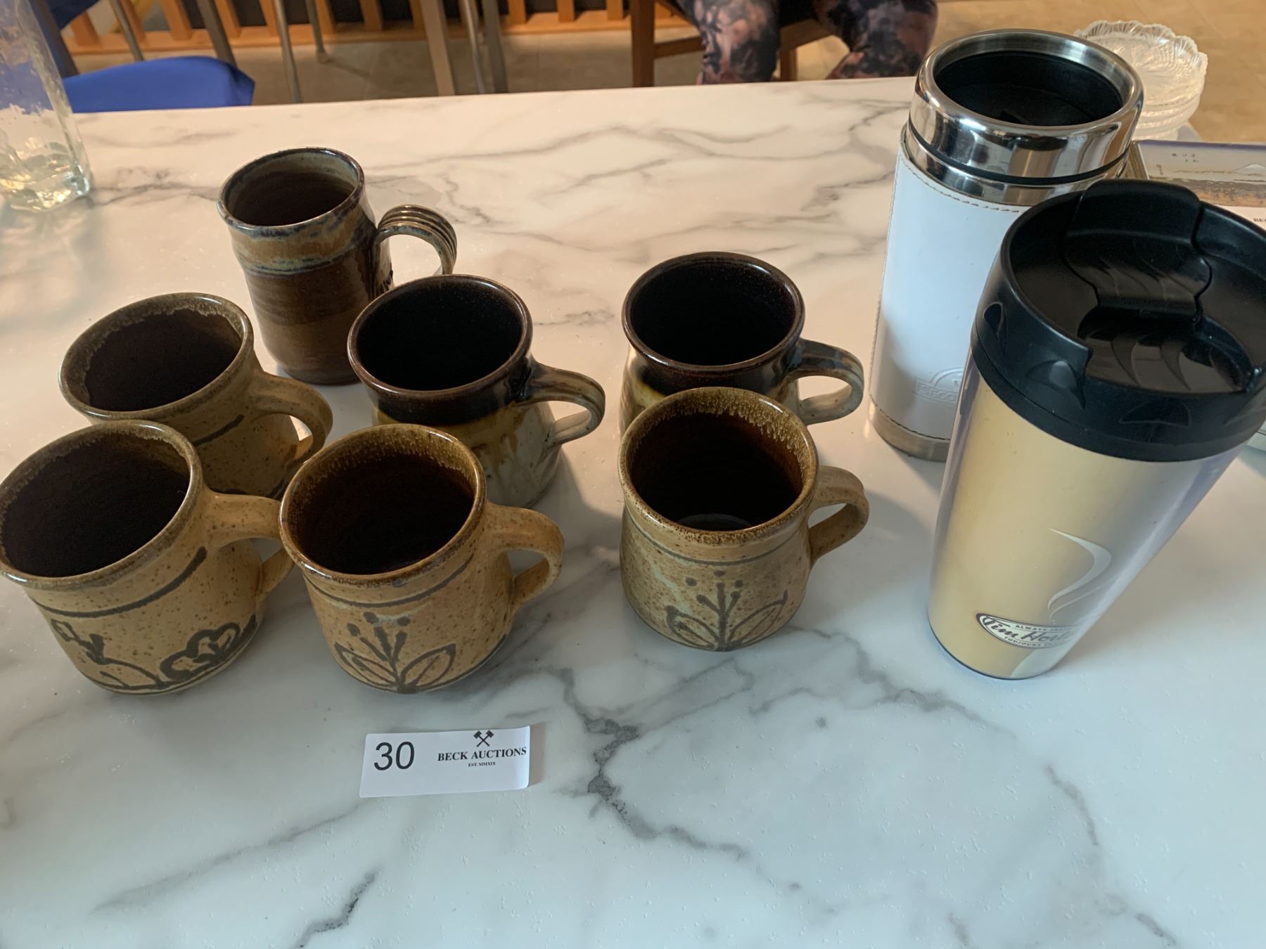 Set of Ceramic Mugs and (2) Thermal Coffee Cups