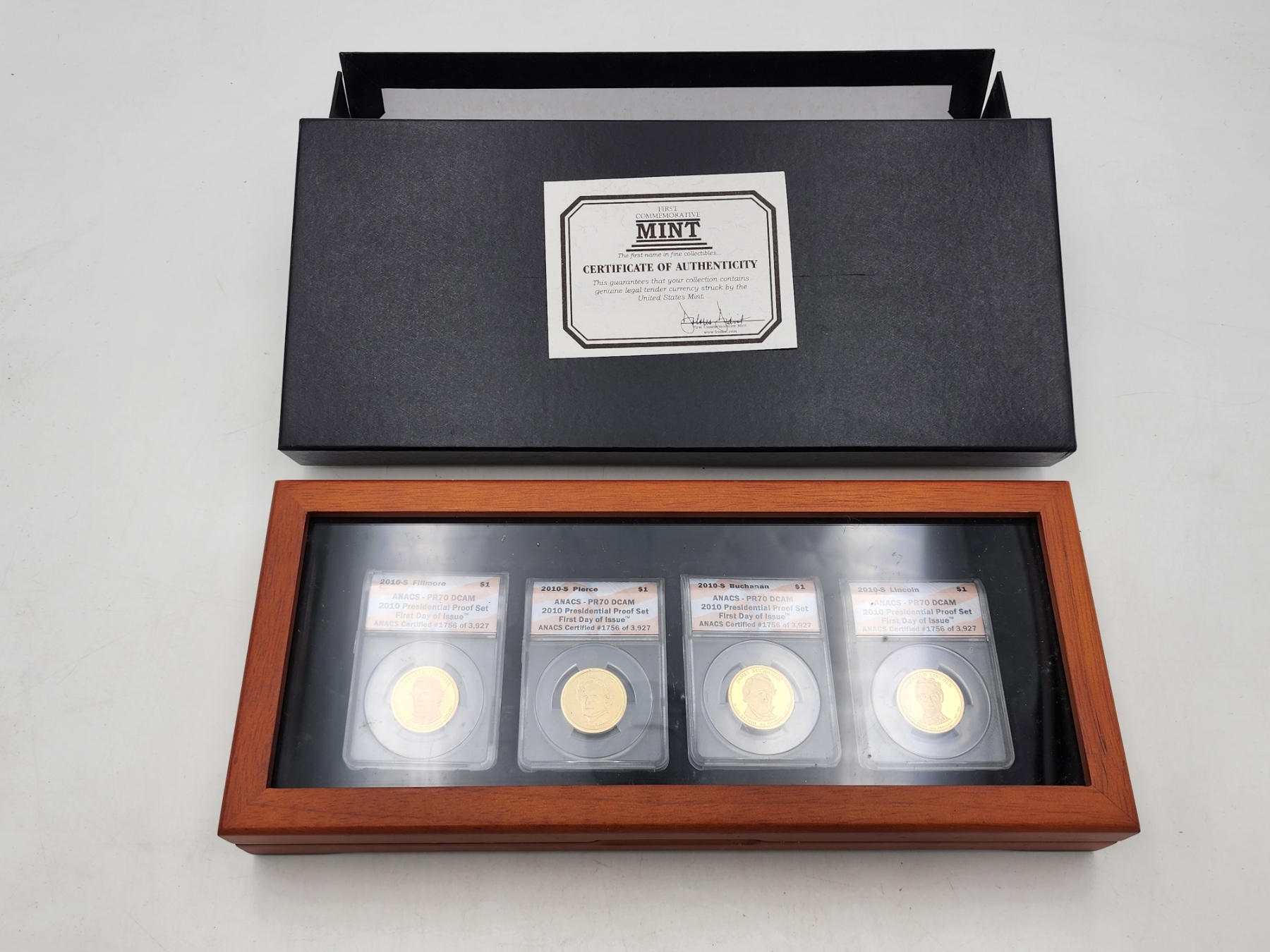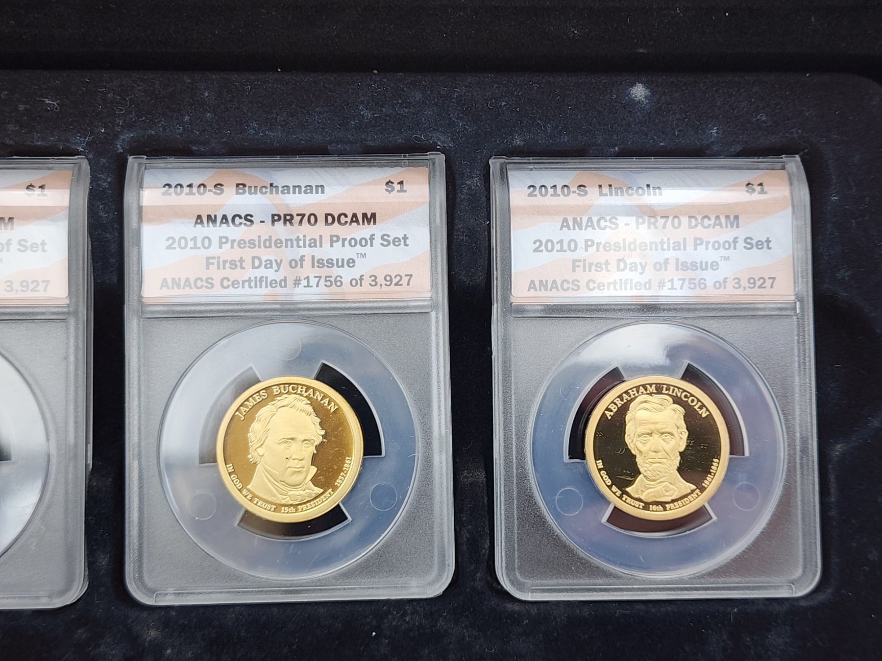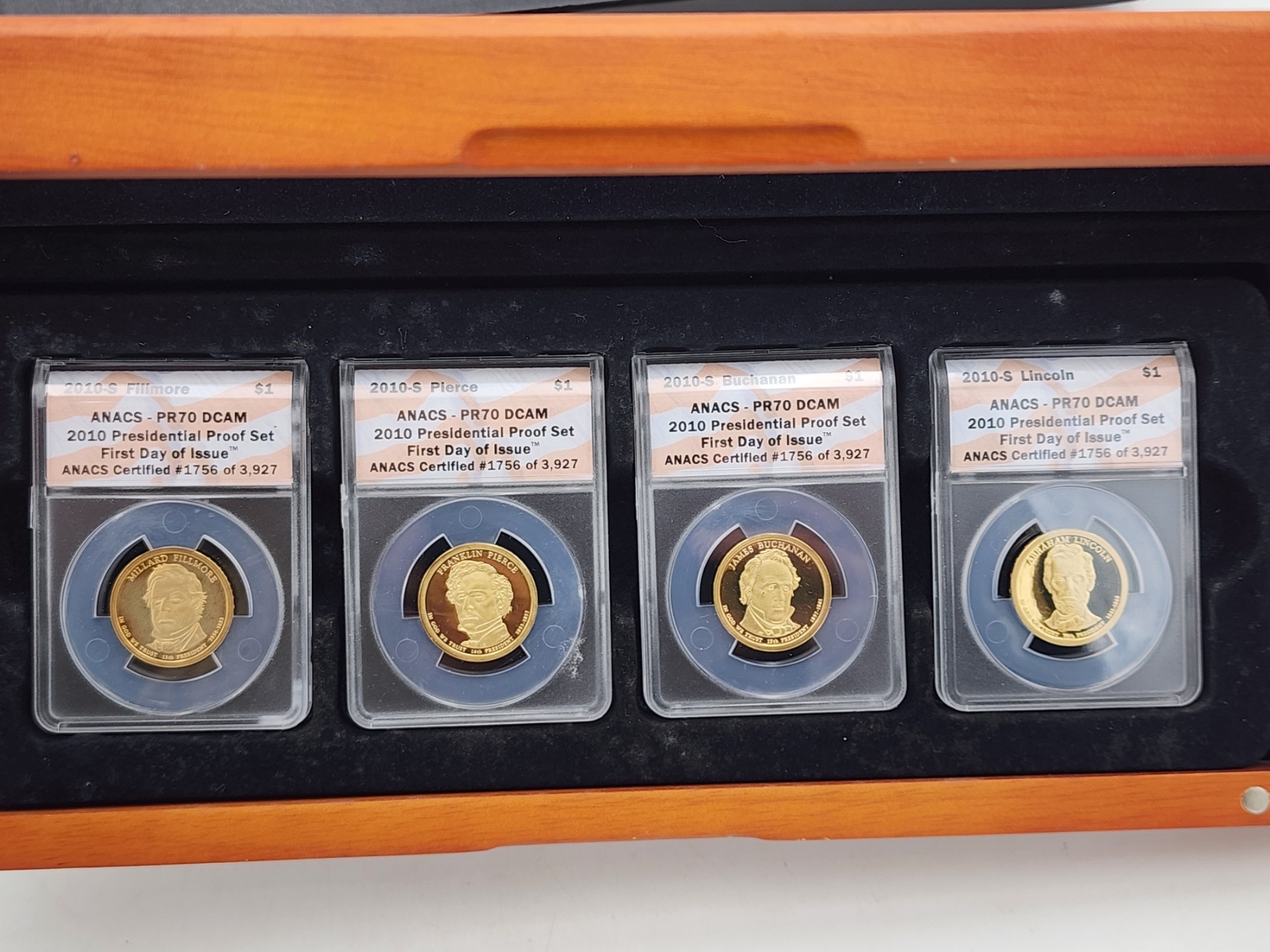 Set of Certified 2010-S Presidential Dollar Coins ANACS PR70 DCAM in Wooden Display Box