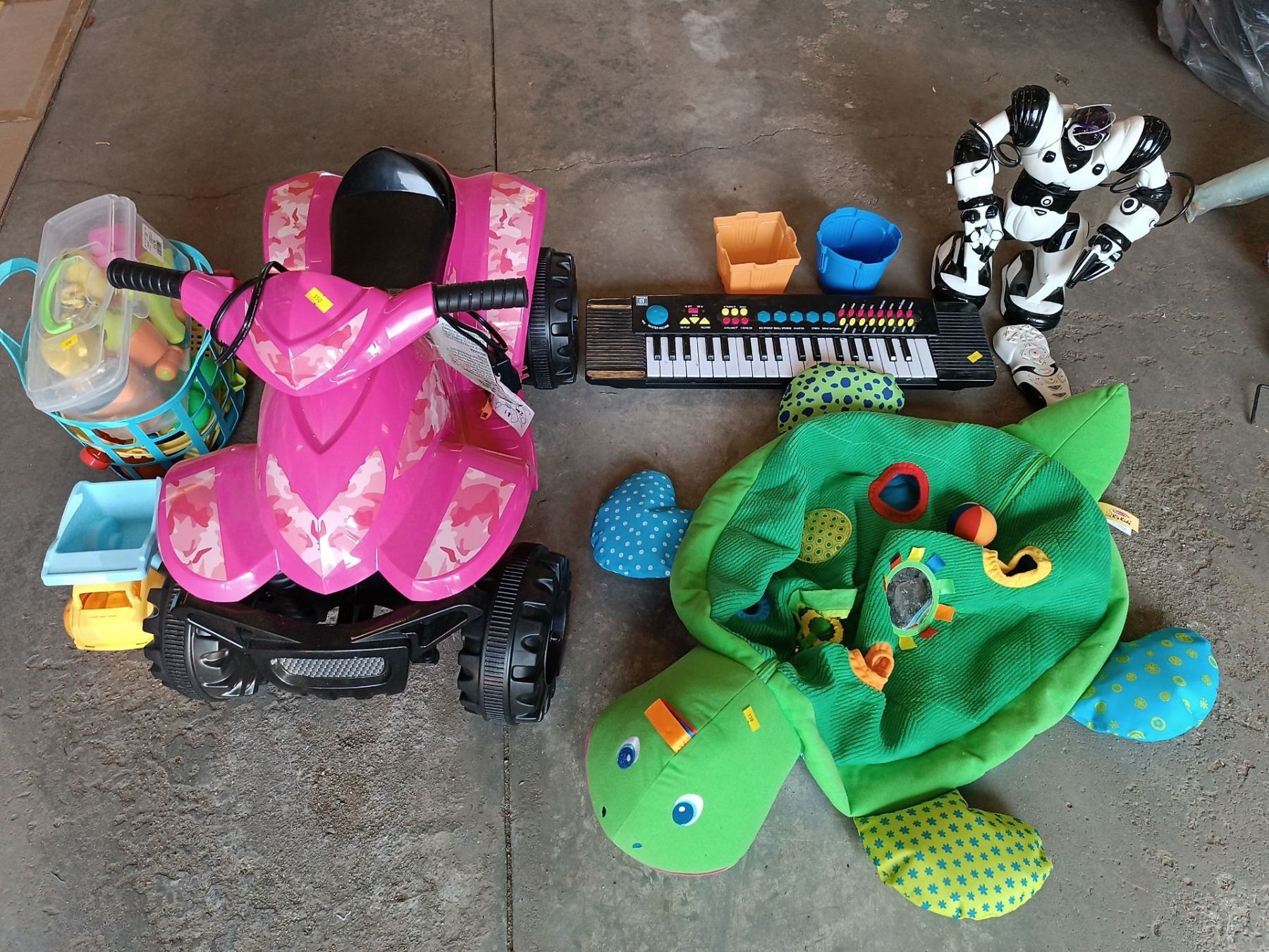 Set of Children's Toys Including Electronic Robot, Electronic Toy Car, Stuffies, and More!