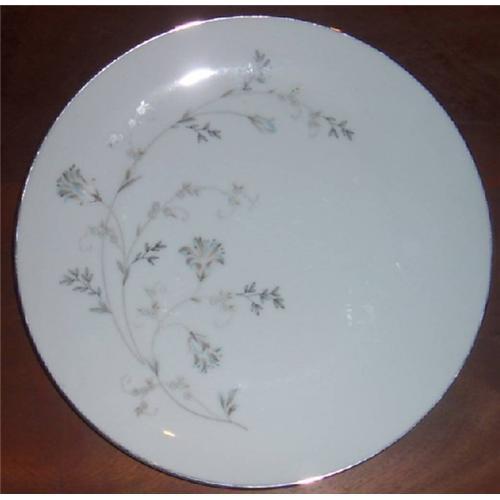 China service for 8. 8 Dinner plates, 8 Salad Plates, 8 cup/saucer, 8 cereal, gravy bowl, platter, 1 lg. vegetable bowl. 1960's Wheat Pattern by Lennox. This set has not been used much if any. Very shiny and no scratches, chips or wear. I am told that this pattern was not in existence for very long and is not available now. Silver border with pale blue and silver flowing sheaths of wheat. One plate has a small chip in the edge as shown. Gravy handle is broken off but is available with set.