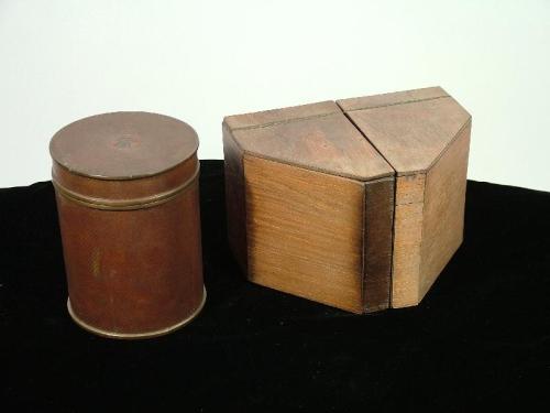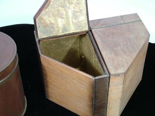 (China 20th Century) Wood with lined interiors, 5" by 6" each, and a brass and cloisonne container, 6" 4 3/4".