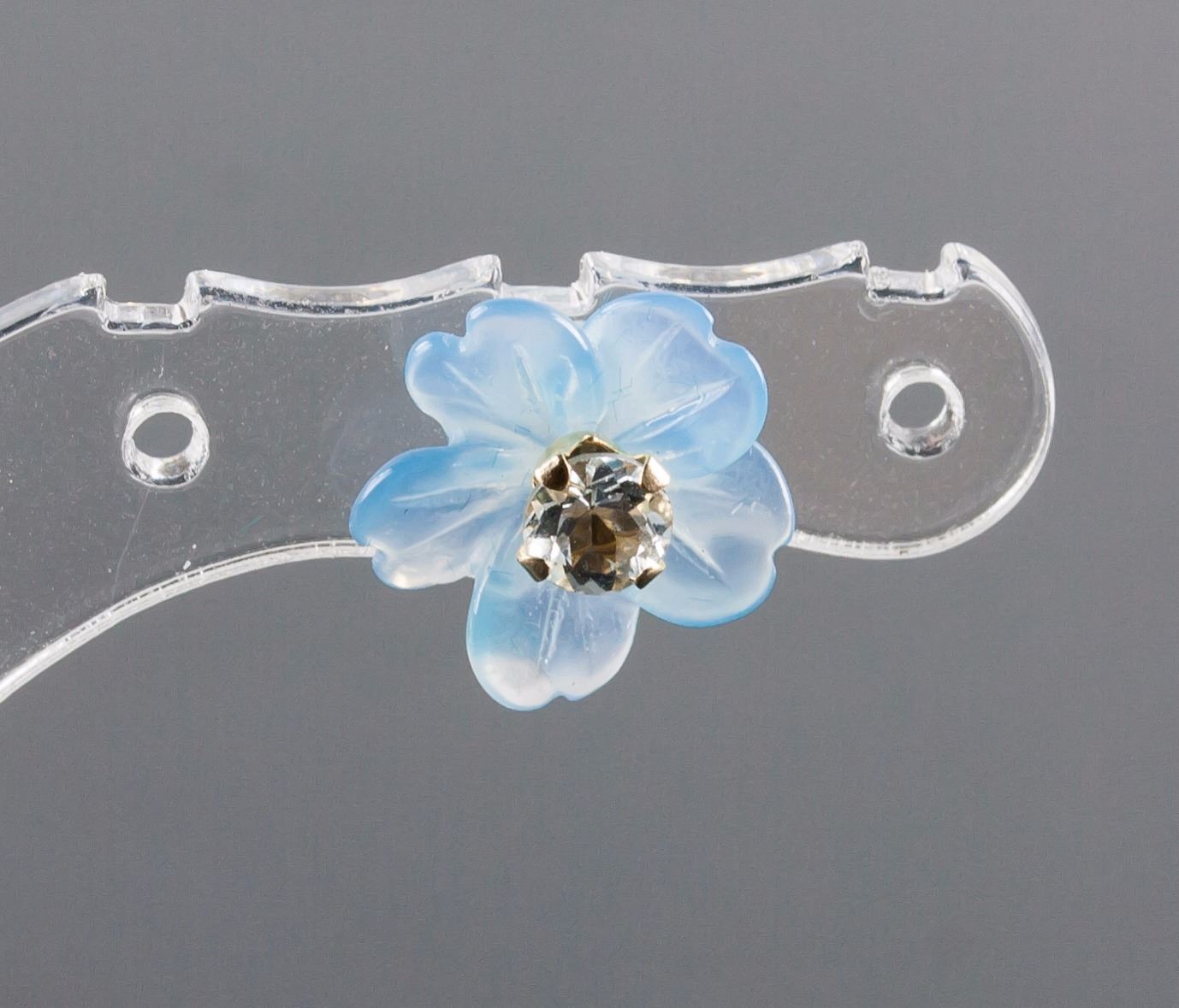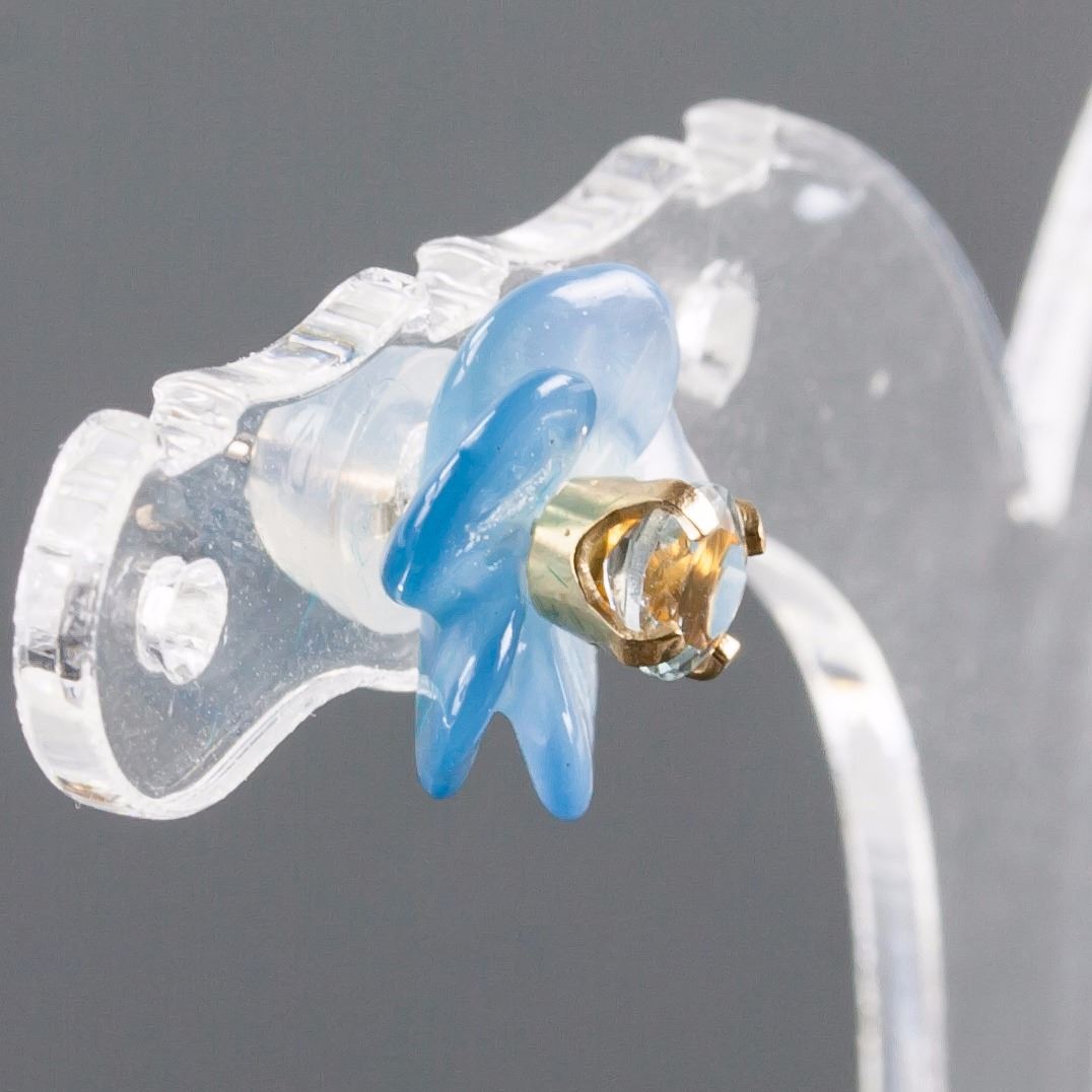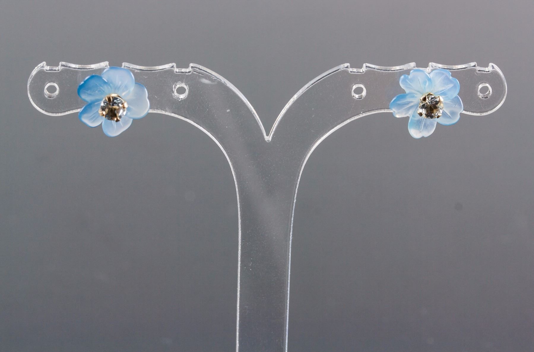 Stamped 14k white gold hopp earrings; set with pink cubic zirconia; retail value $400; Stamped 10k yellow gold earrings; set with aquamarine and chalcedony; retail value $300