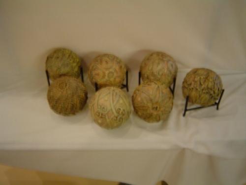 Set of Seven 3.75" Decorative Resin Rosette Spheres with stands.