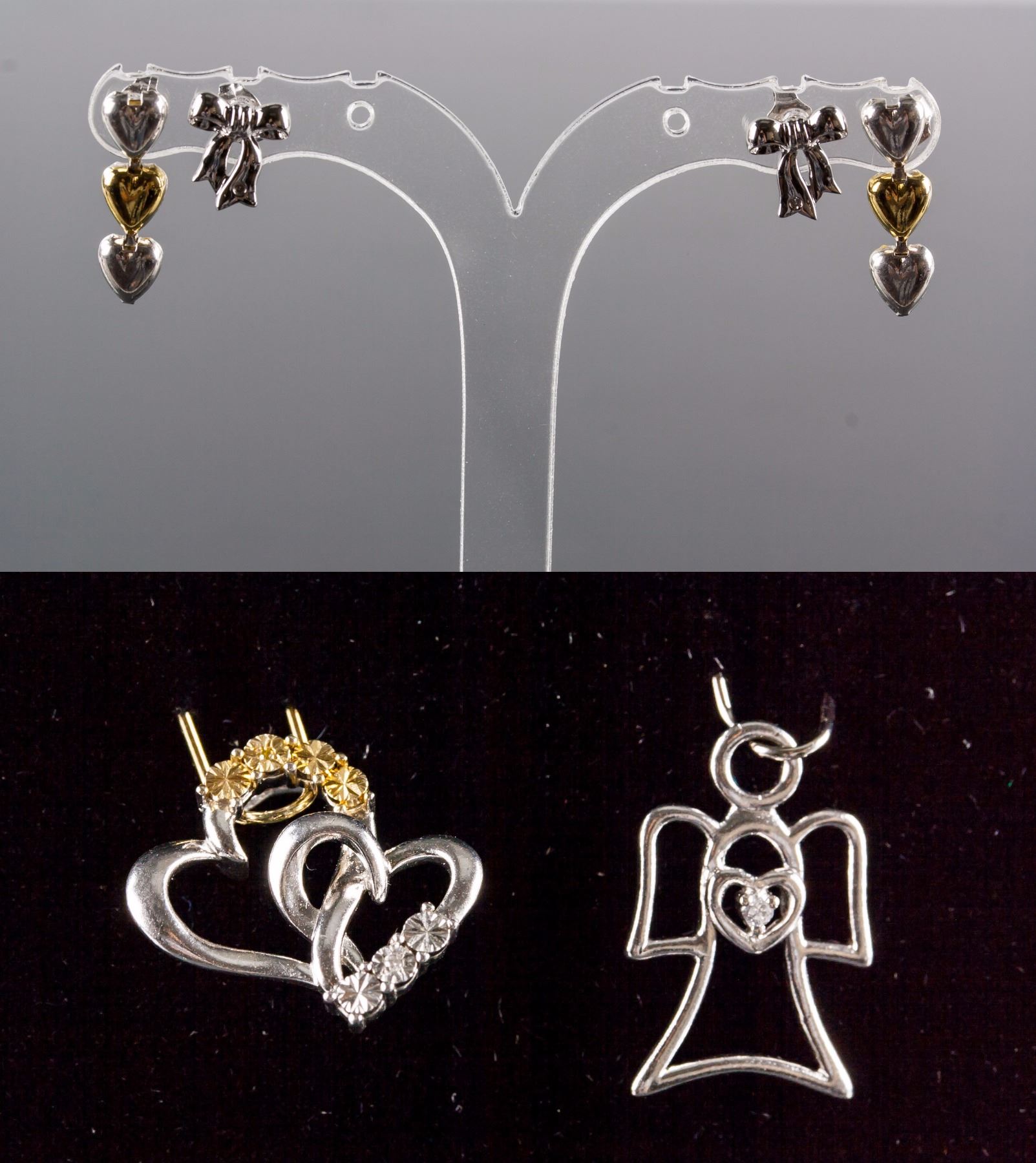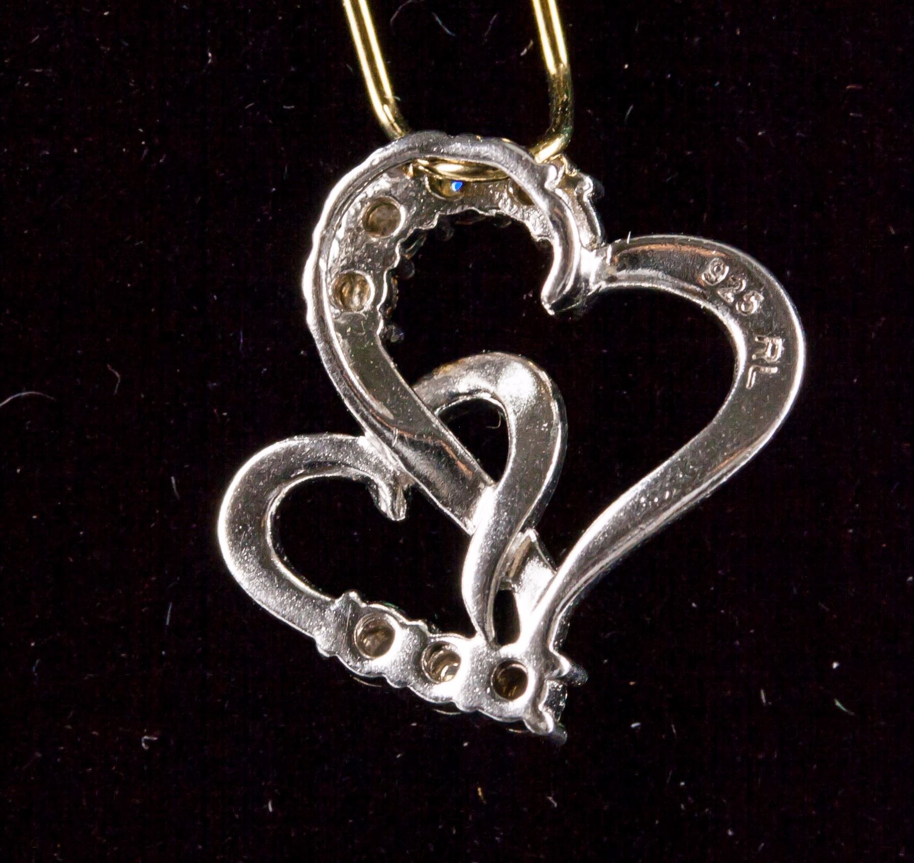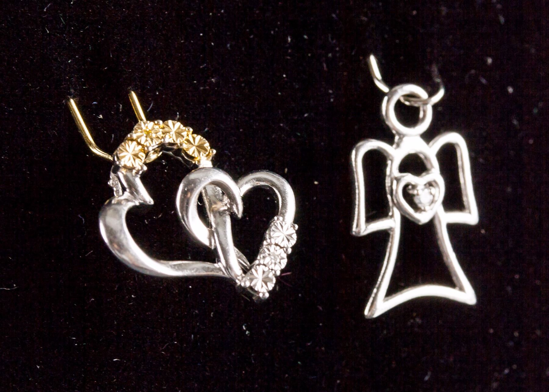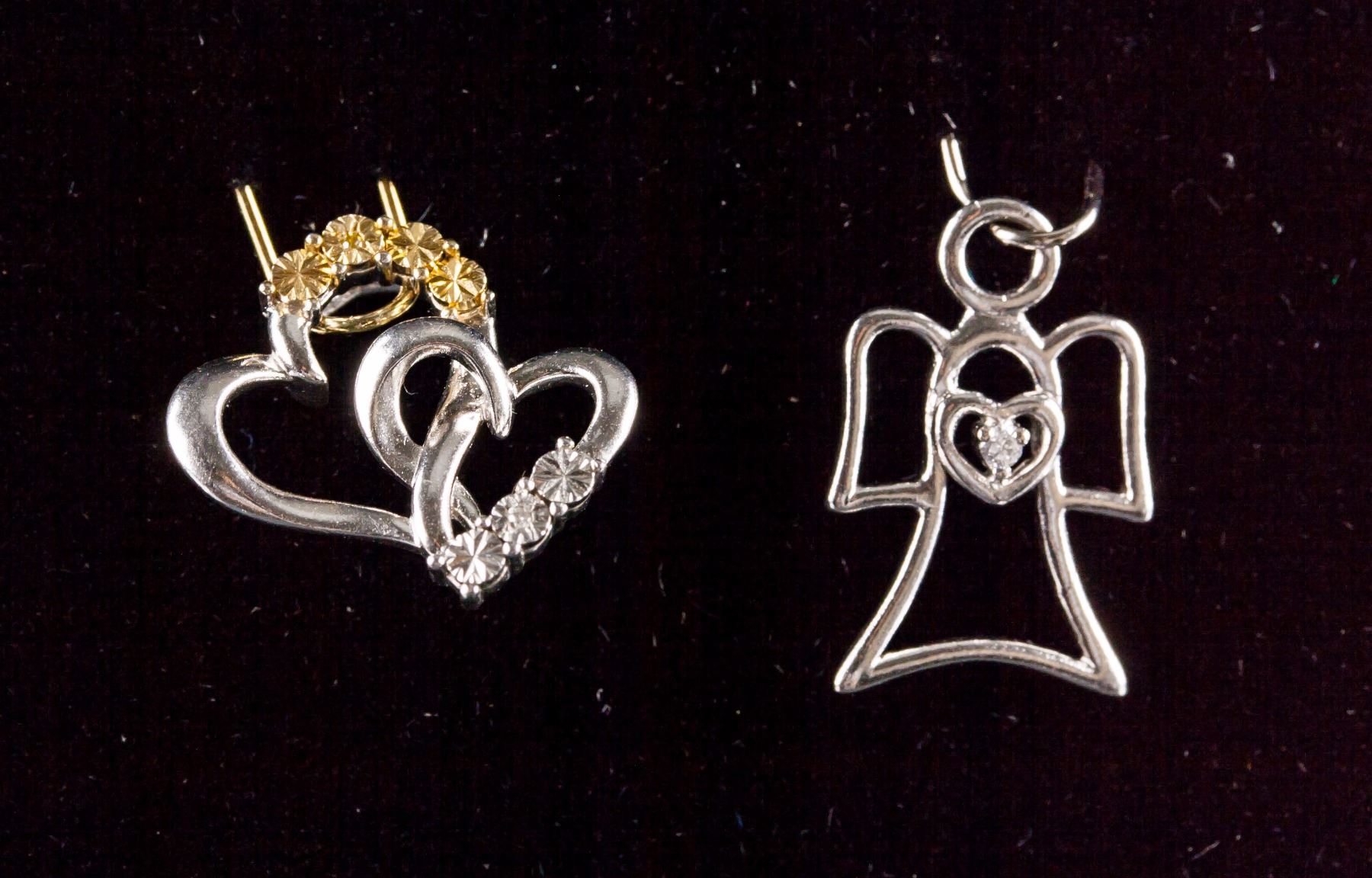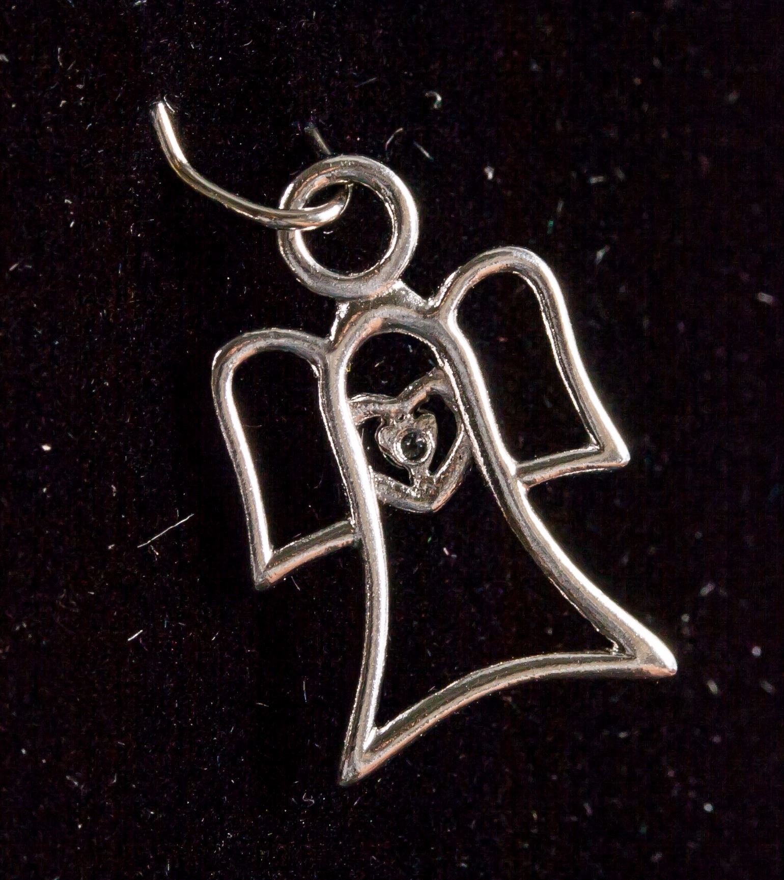 Sterling silver heart and angel shaped pendant; set with diamond; retail value $240; 2.47 grams