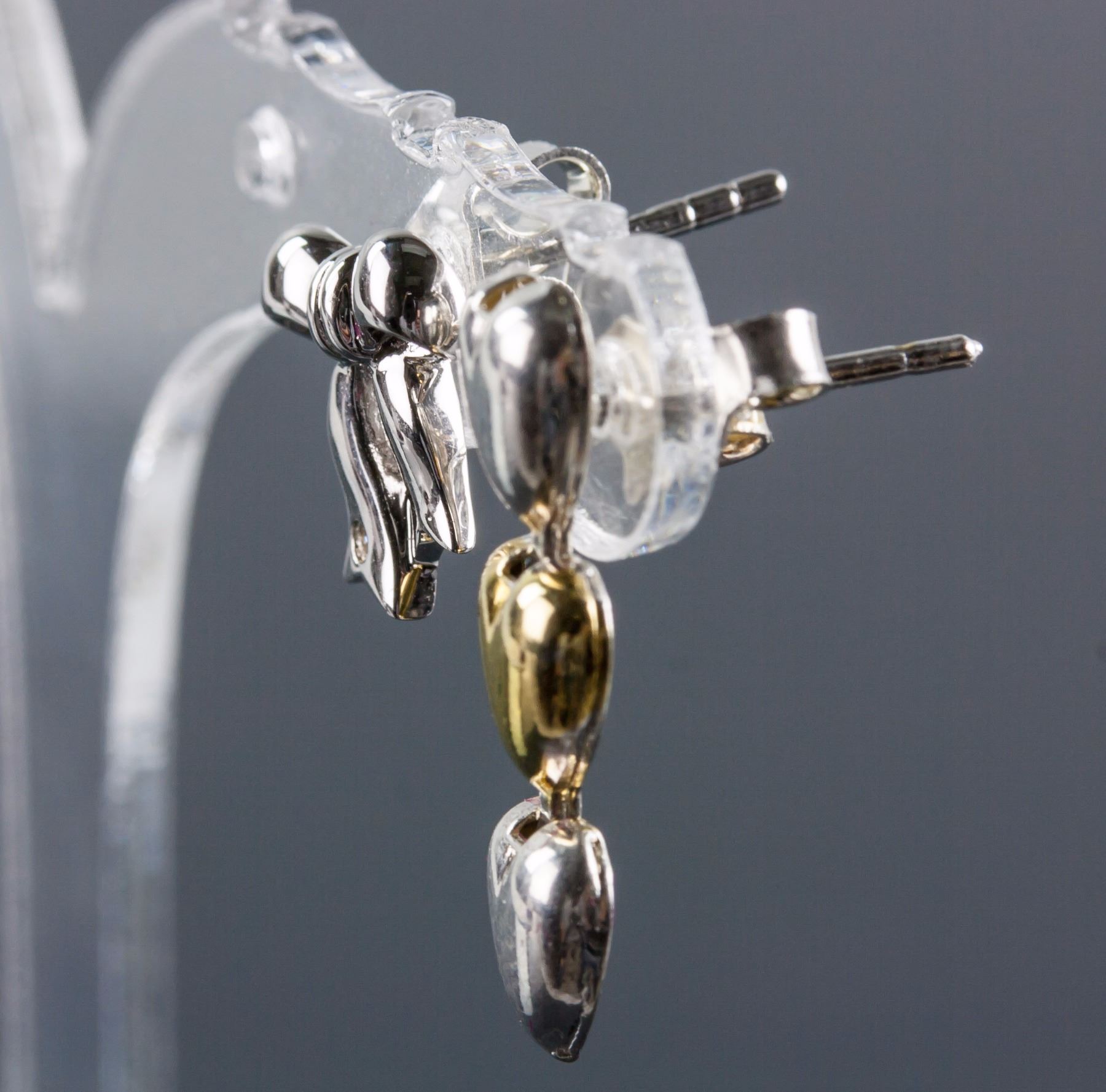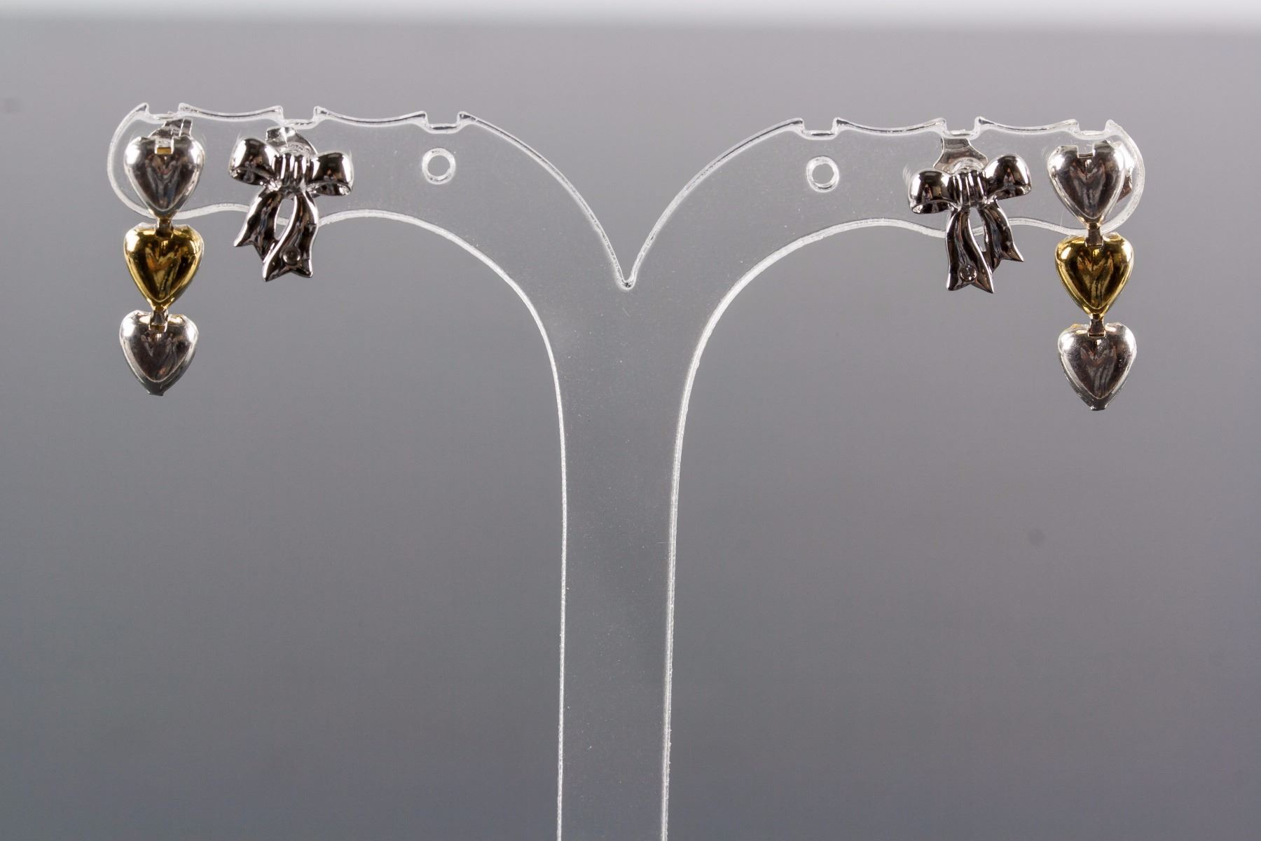 Sterling silver rhodium plated ribbon and heart shaped earrings; set with diamonds; retail value $200;