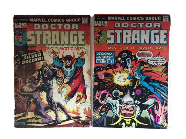 Set of Doctor Strange Vintage Comics: #5 Dec 1974 and #13, April 1976. Both in fair condition. #5 was the origin of Silver Dagger. #13 was the first appearance of One-Above-All (Celestial's leader).