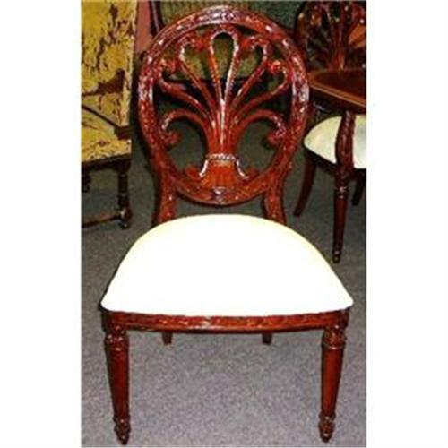 This is a stunning set of eight deeply carved Hepplewhite style dining chairs consisting of two arms and six sides.