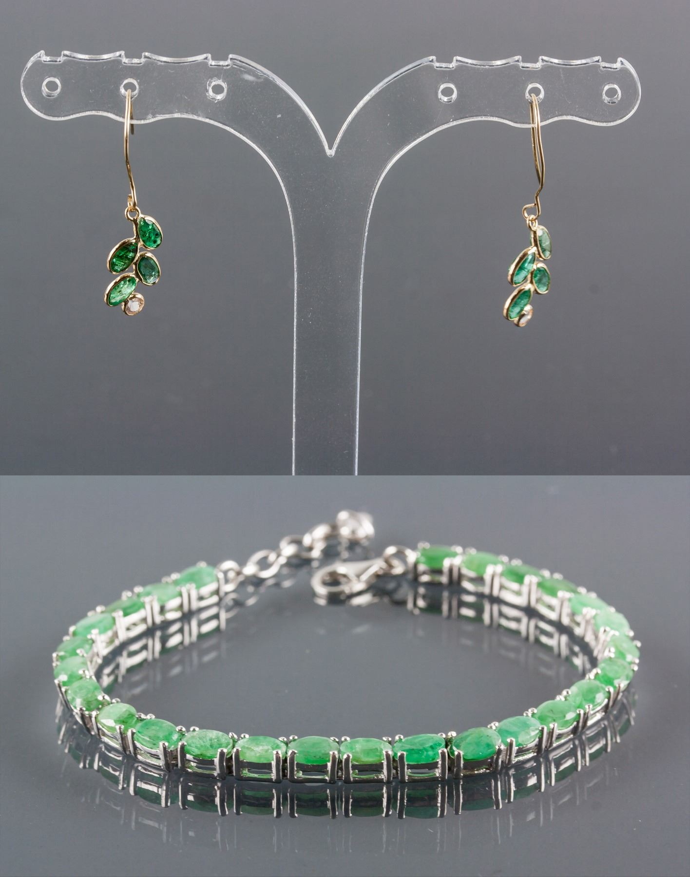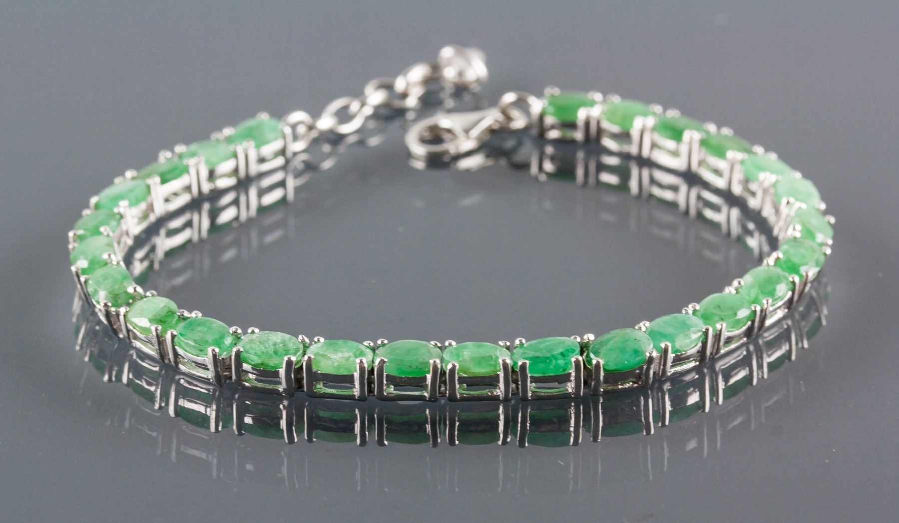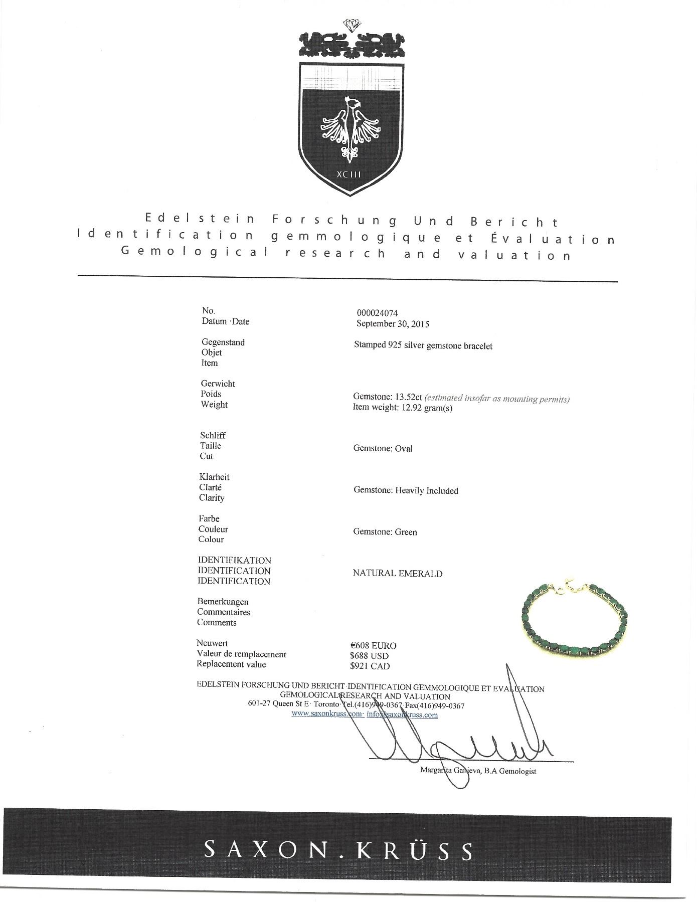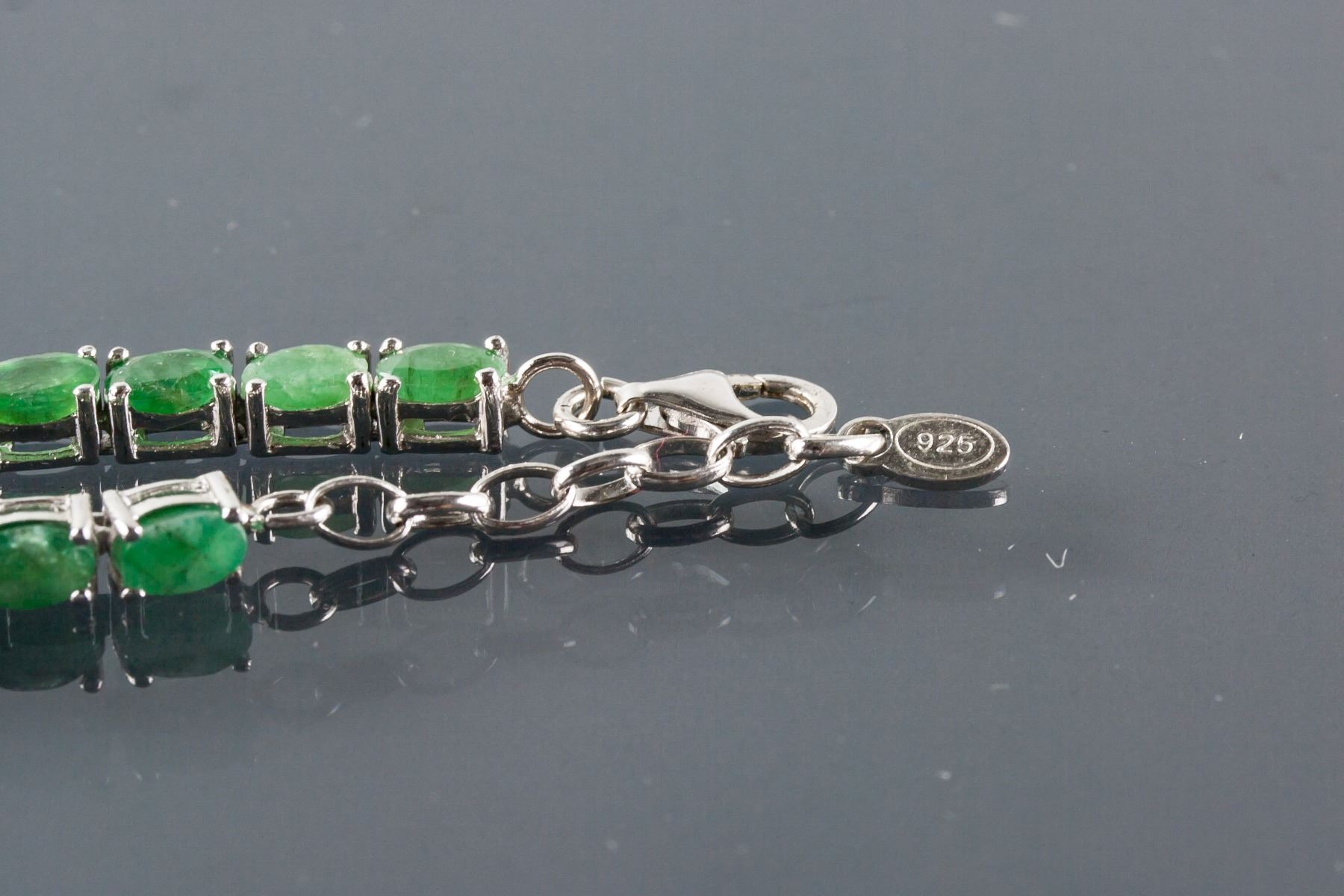 Stamped 925 silver bracelet; set with 13.52ct oval shaped green emerald; certified replacement value $921; 12.92 grams