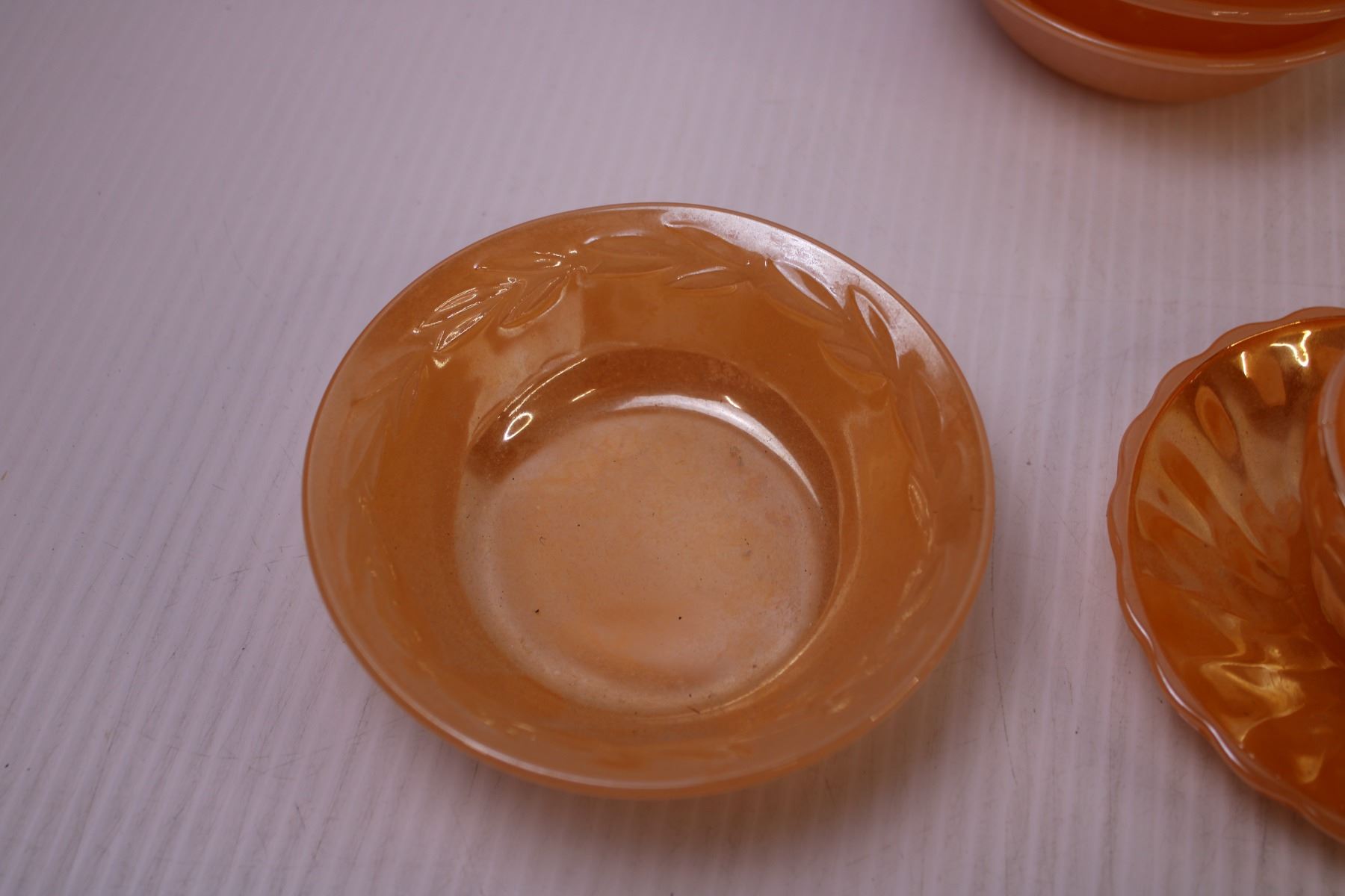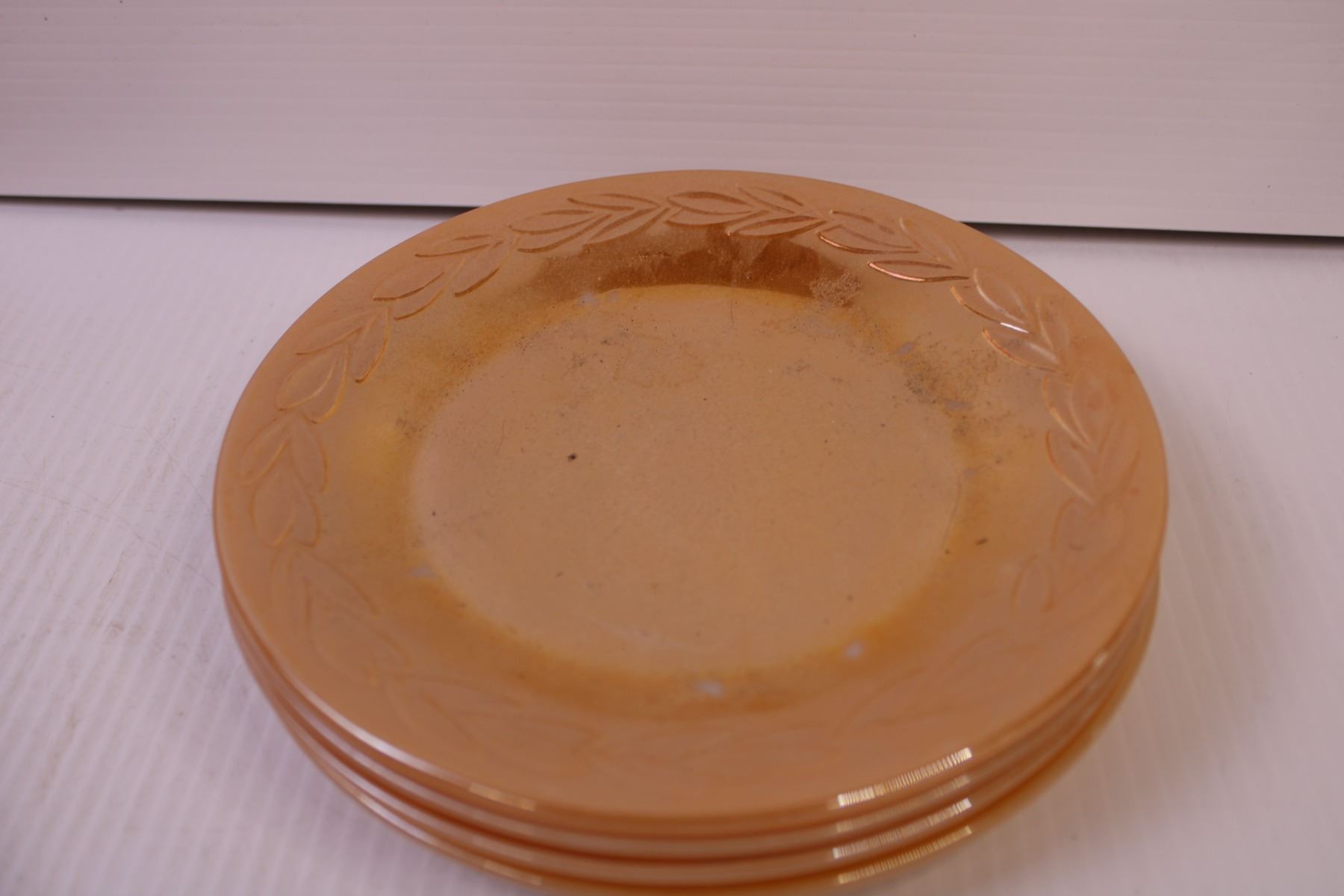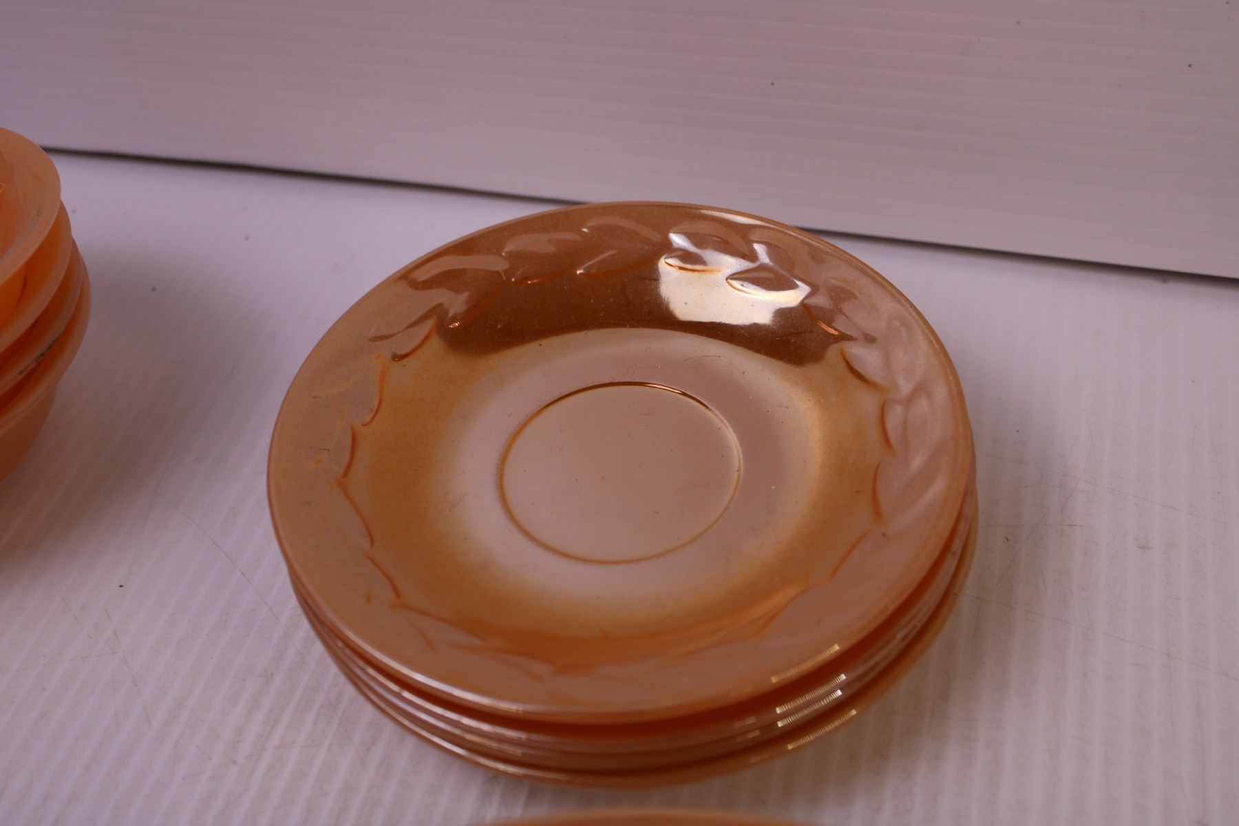 Set of Fire King -Peach Lustre Dishes (4-Dinner Plates 4-Bread Plates 4-Dessert Plates 4-Dessert Bowls and a Cup w/Saucer)