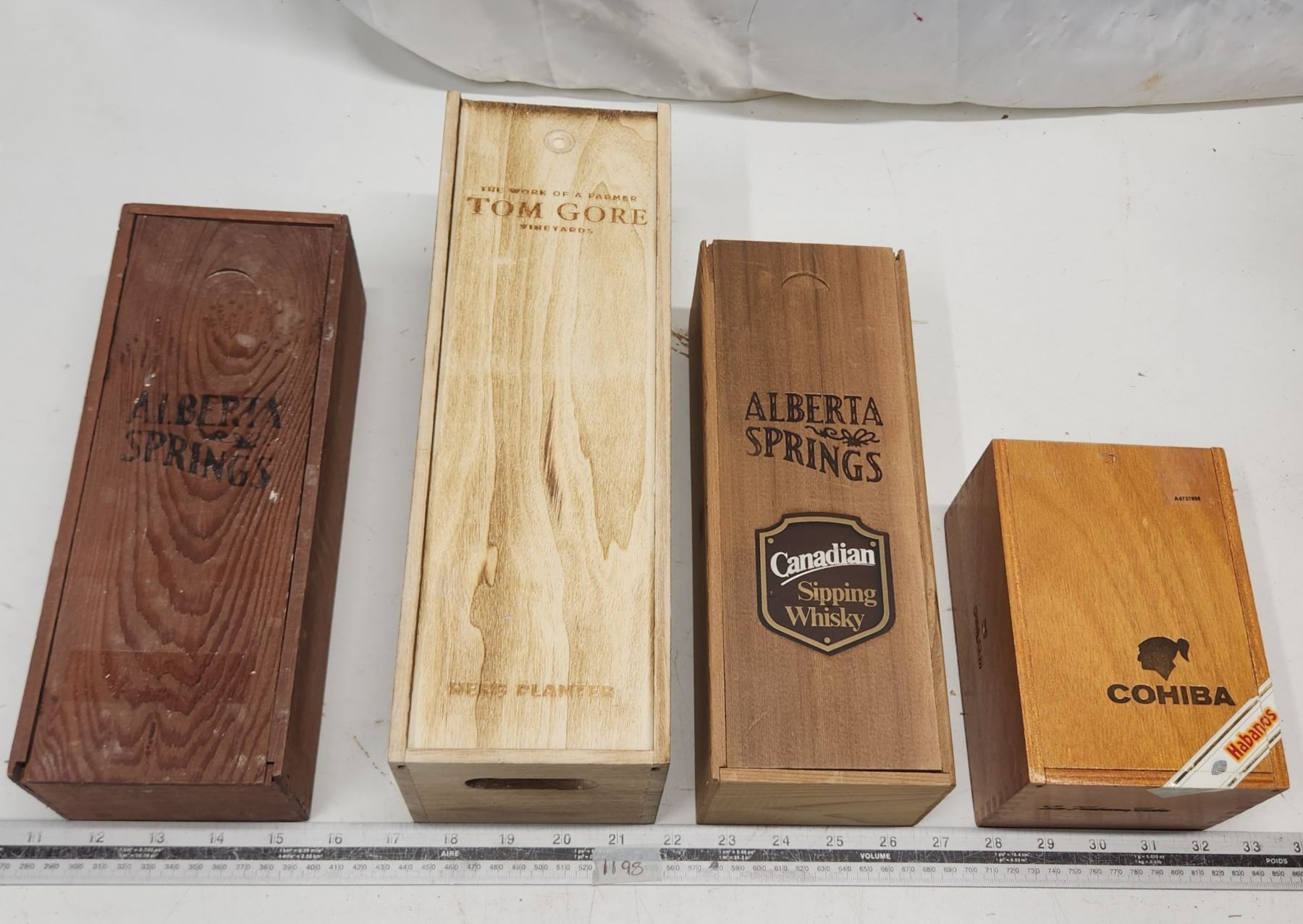 Set of Four (4) Slide-to-Open Wooden Boxes