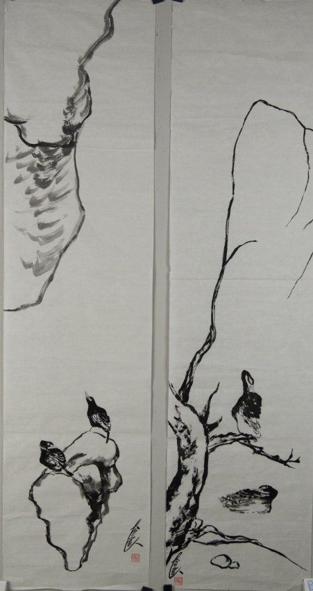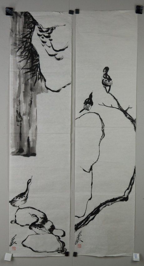 Set of four ink painting, signed and sealed; 138 cm x 35 cm