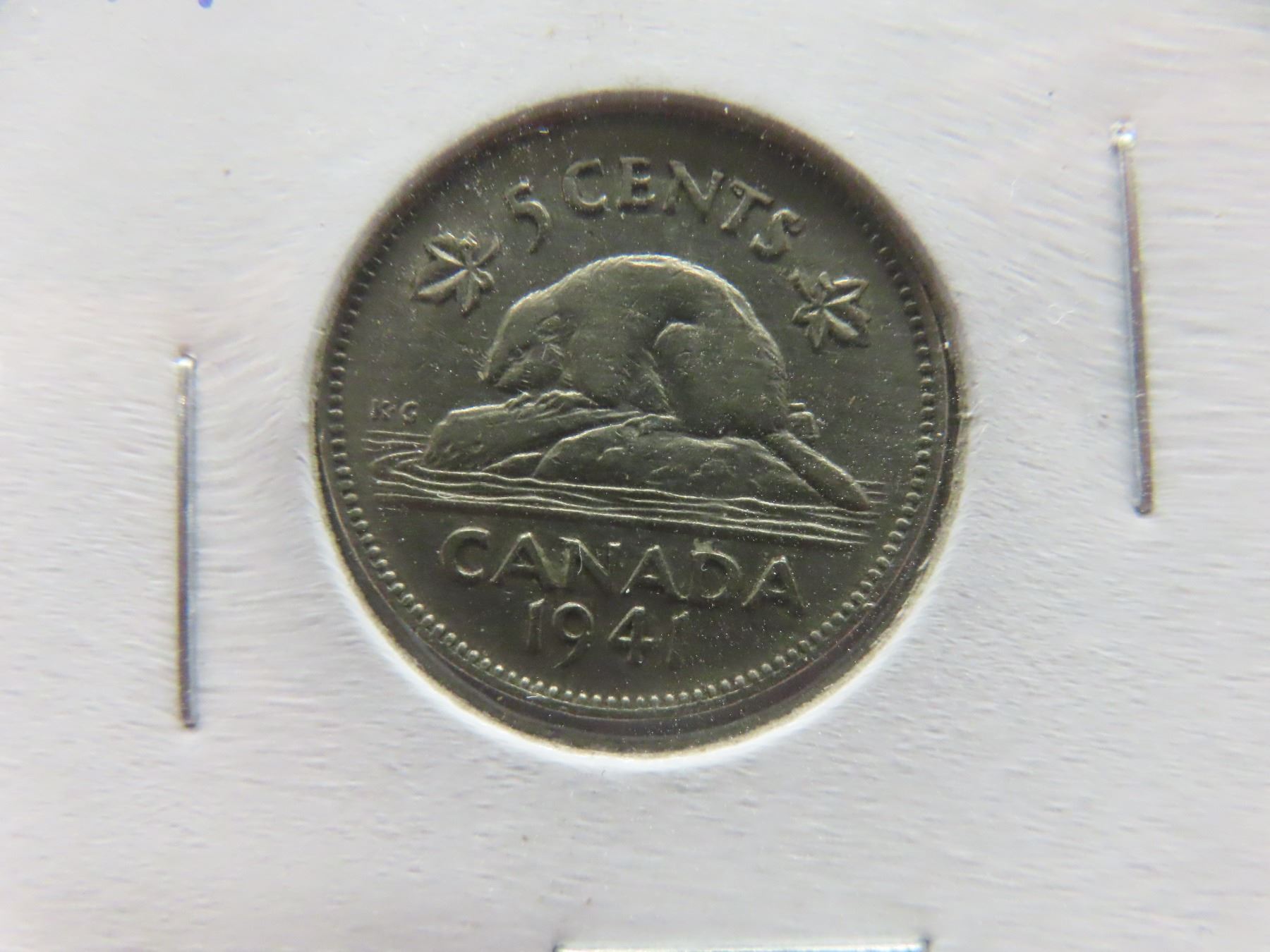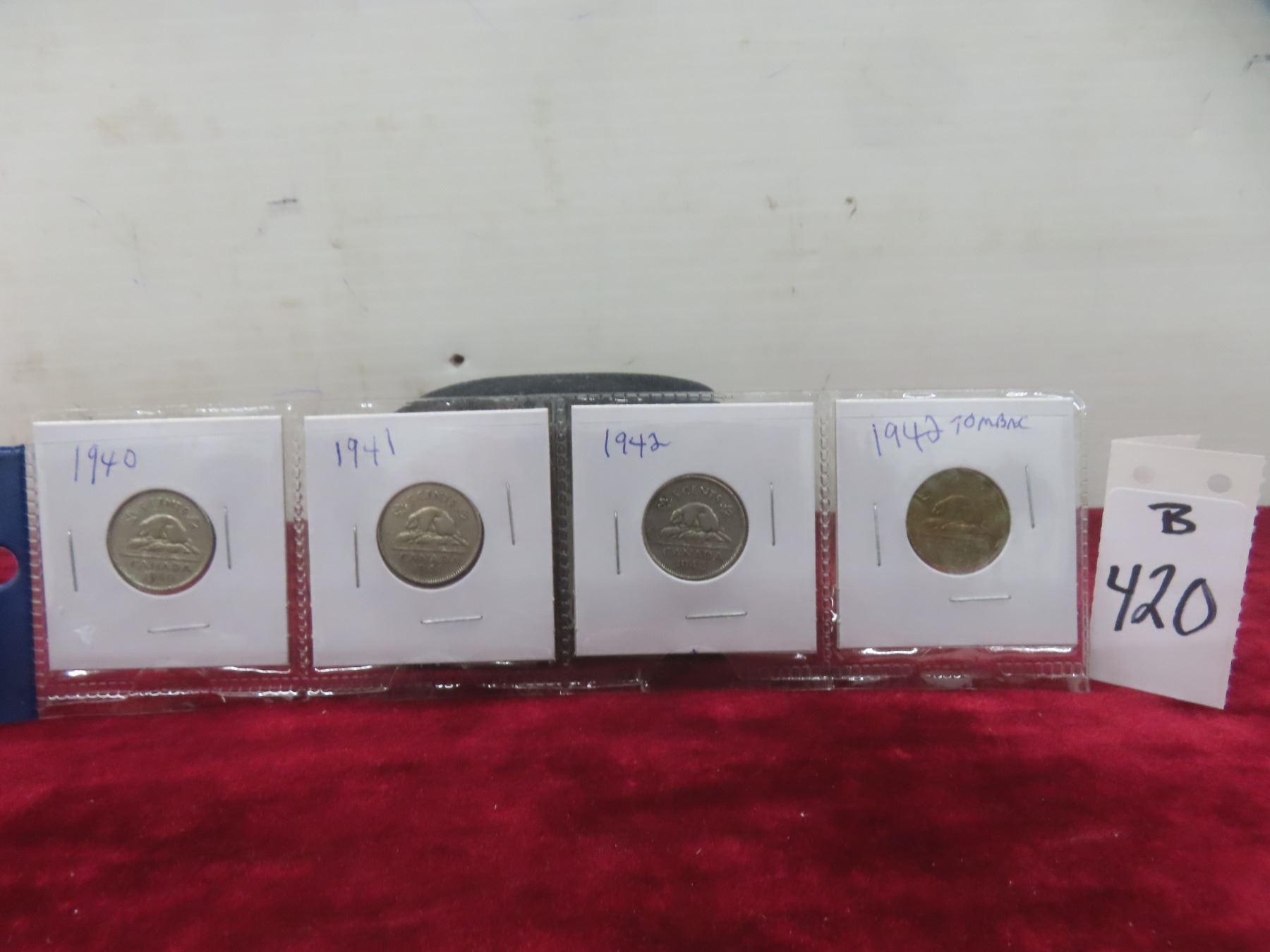 Set of Four Canadian Nickels: 1940, 1941, 1947, 1942 Tombac