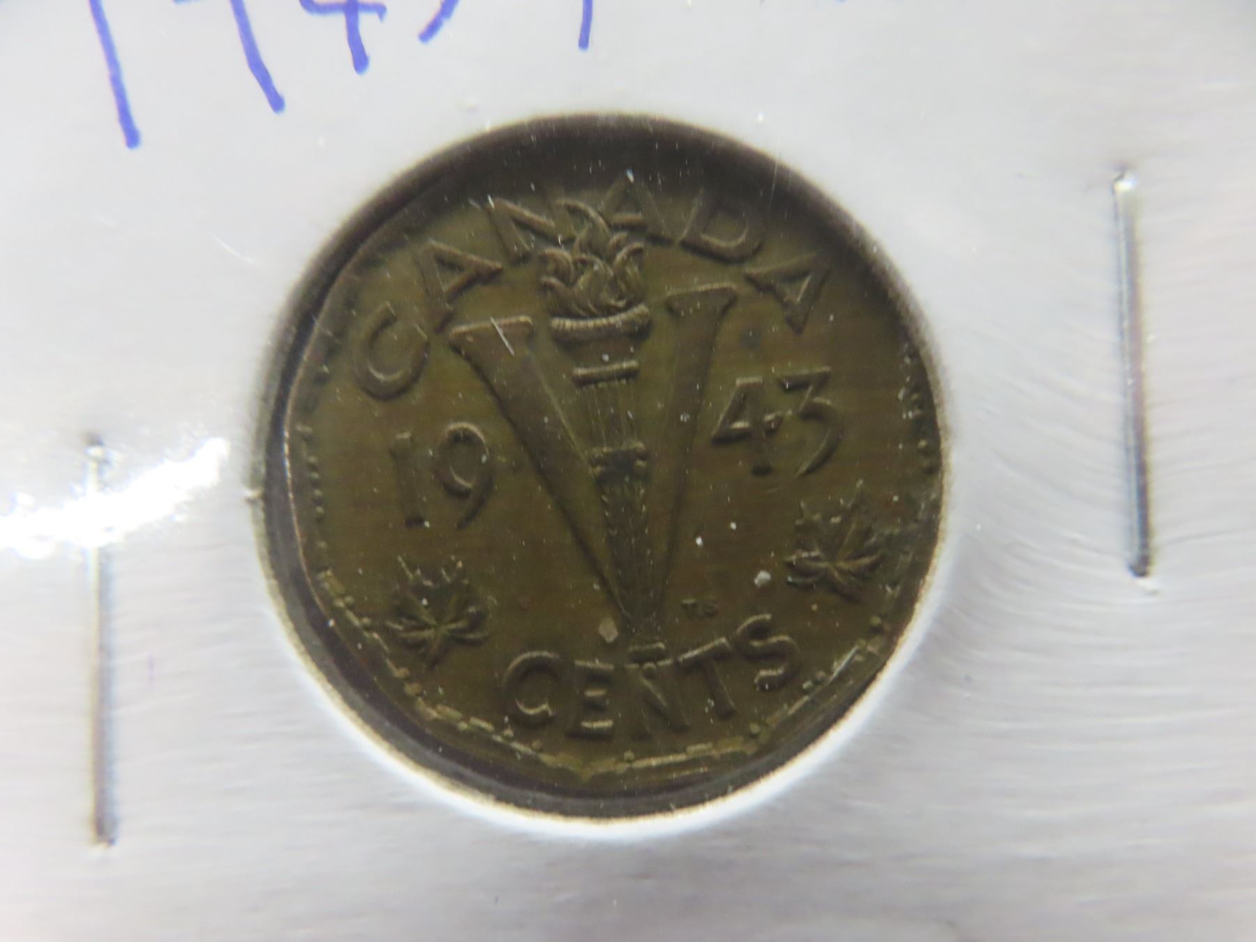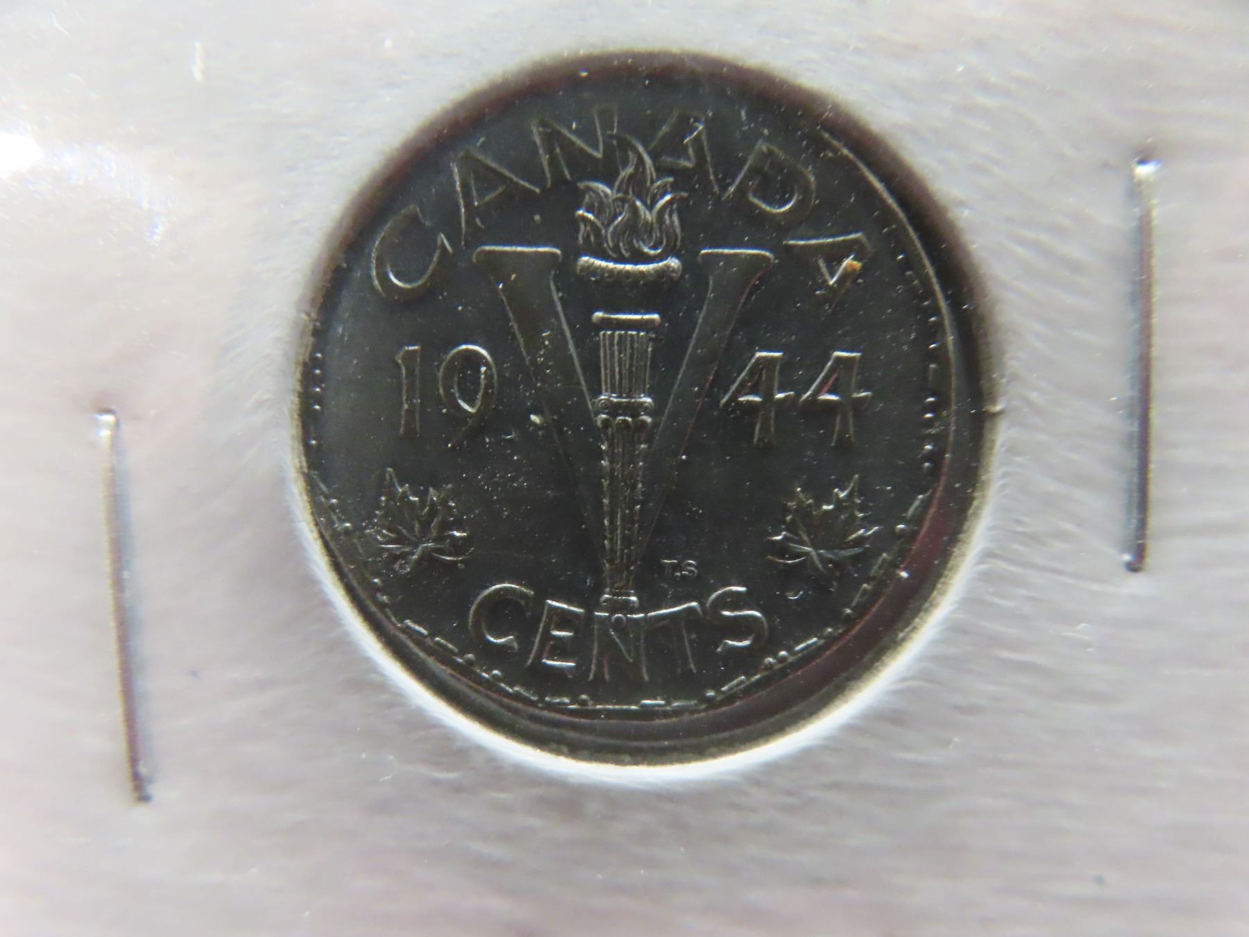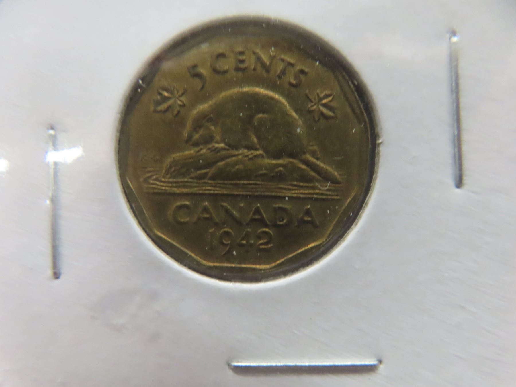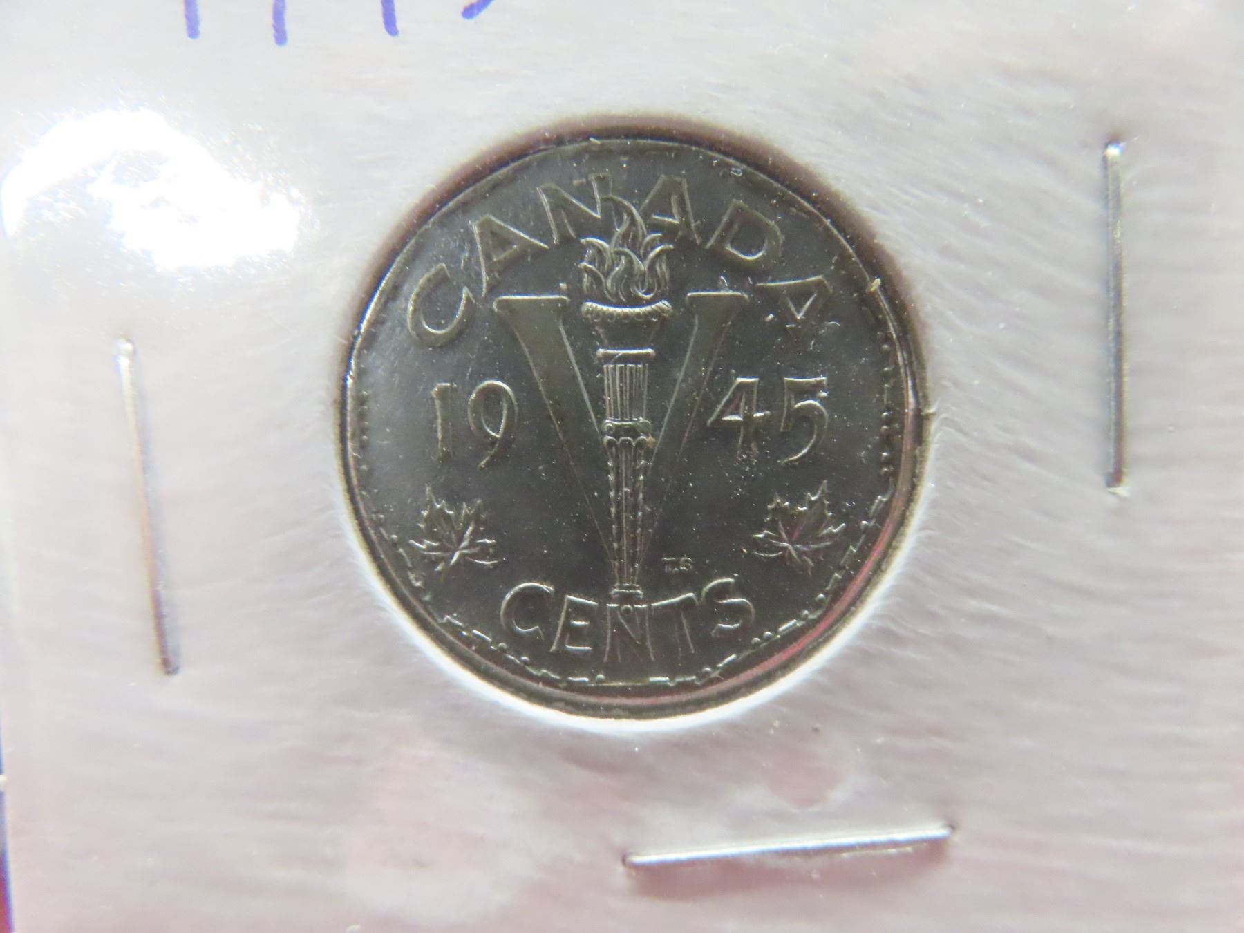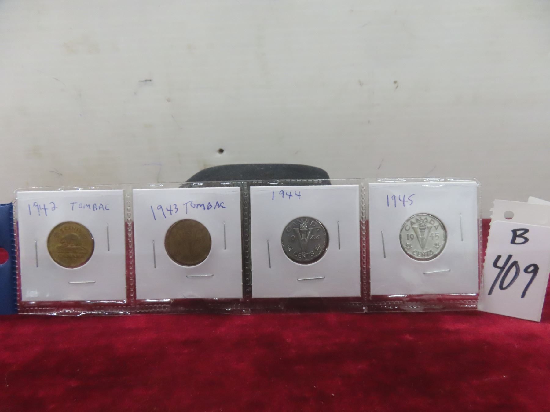 Set of Four Canadian Nickels: 1942 Tombac, 1943 Tombac, 1944, 1945