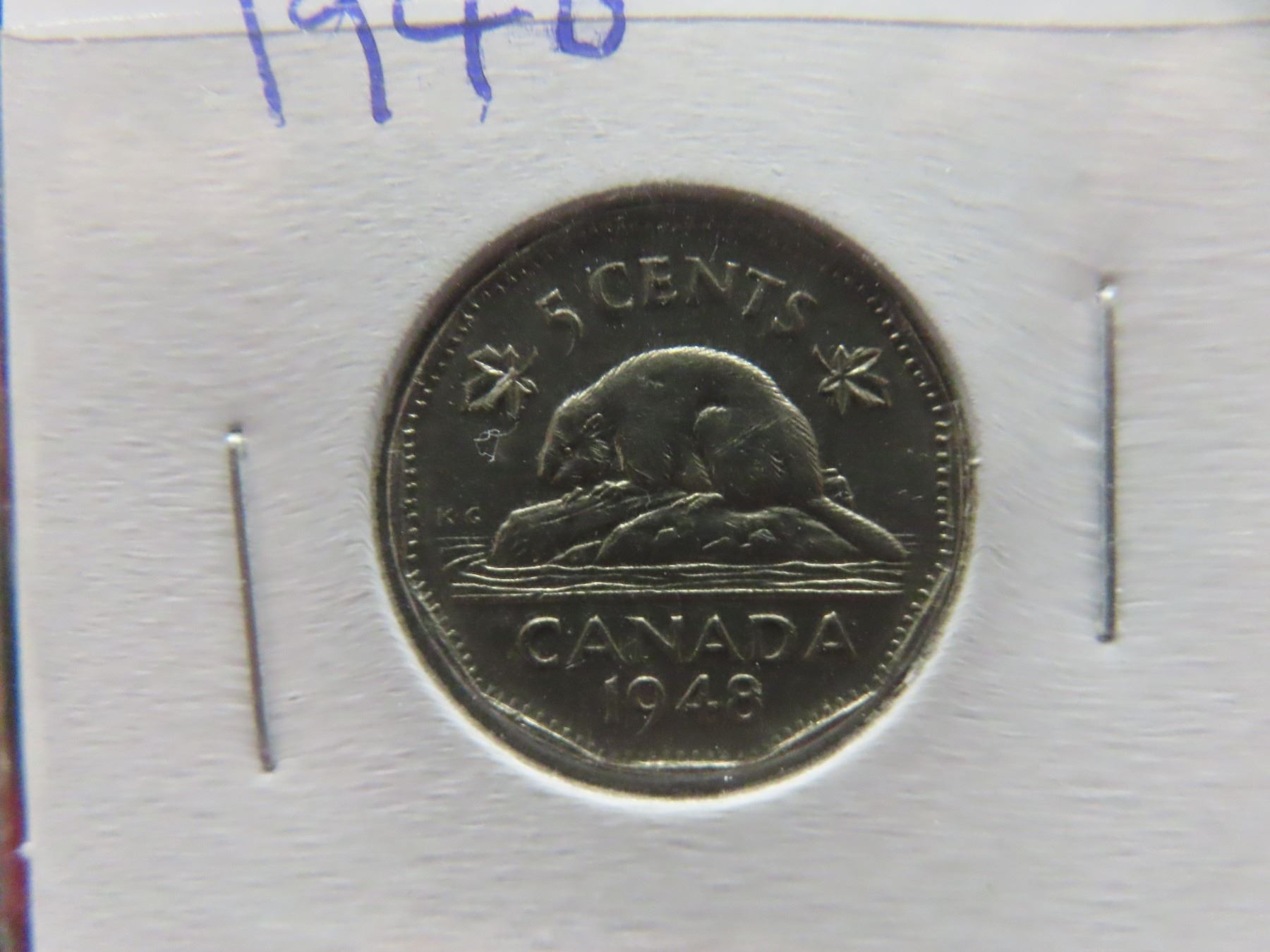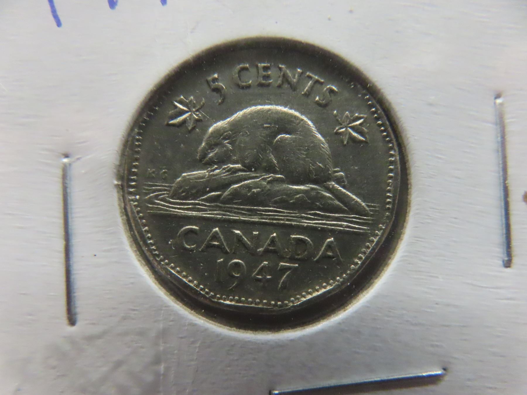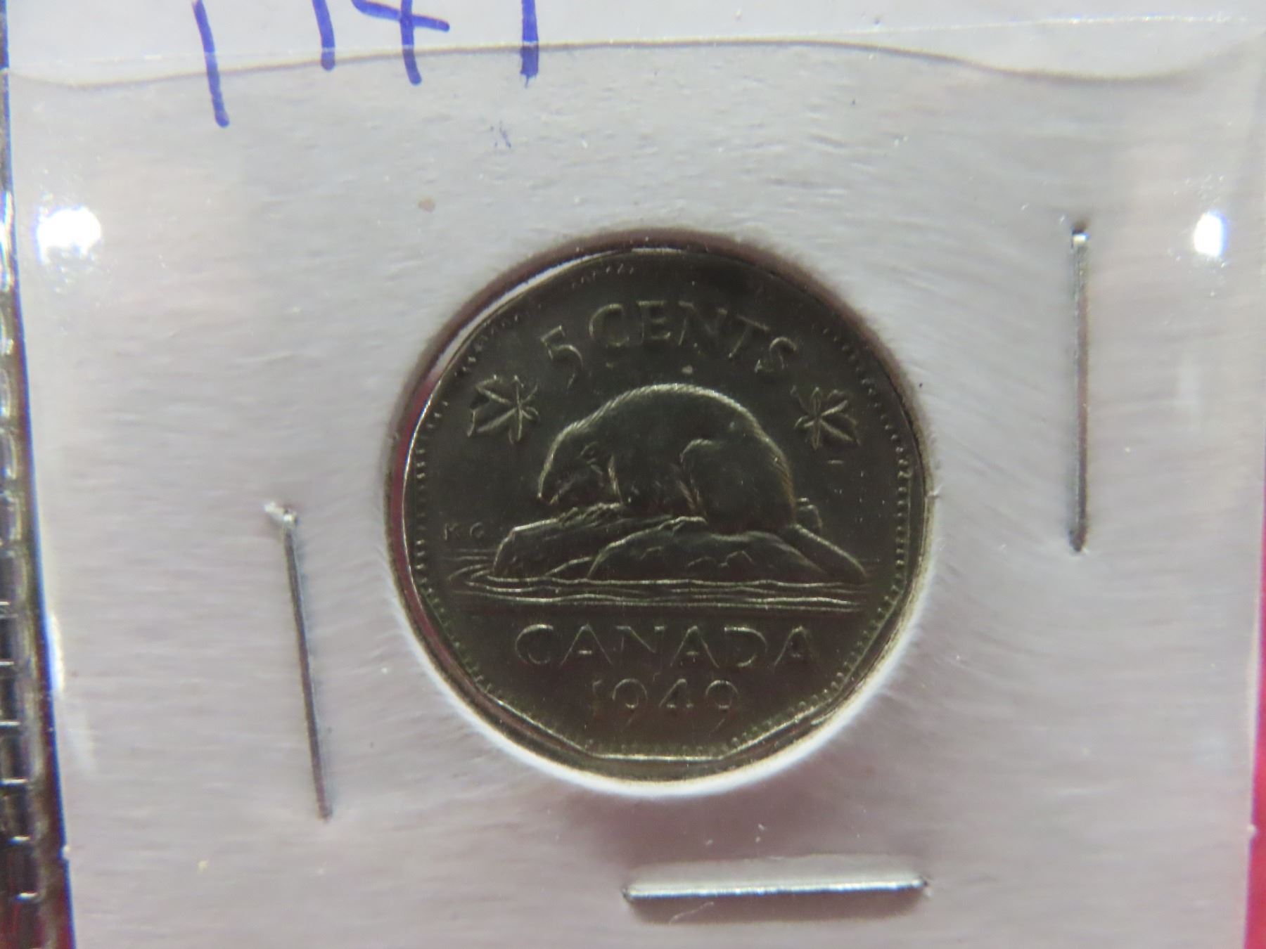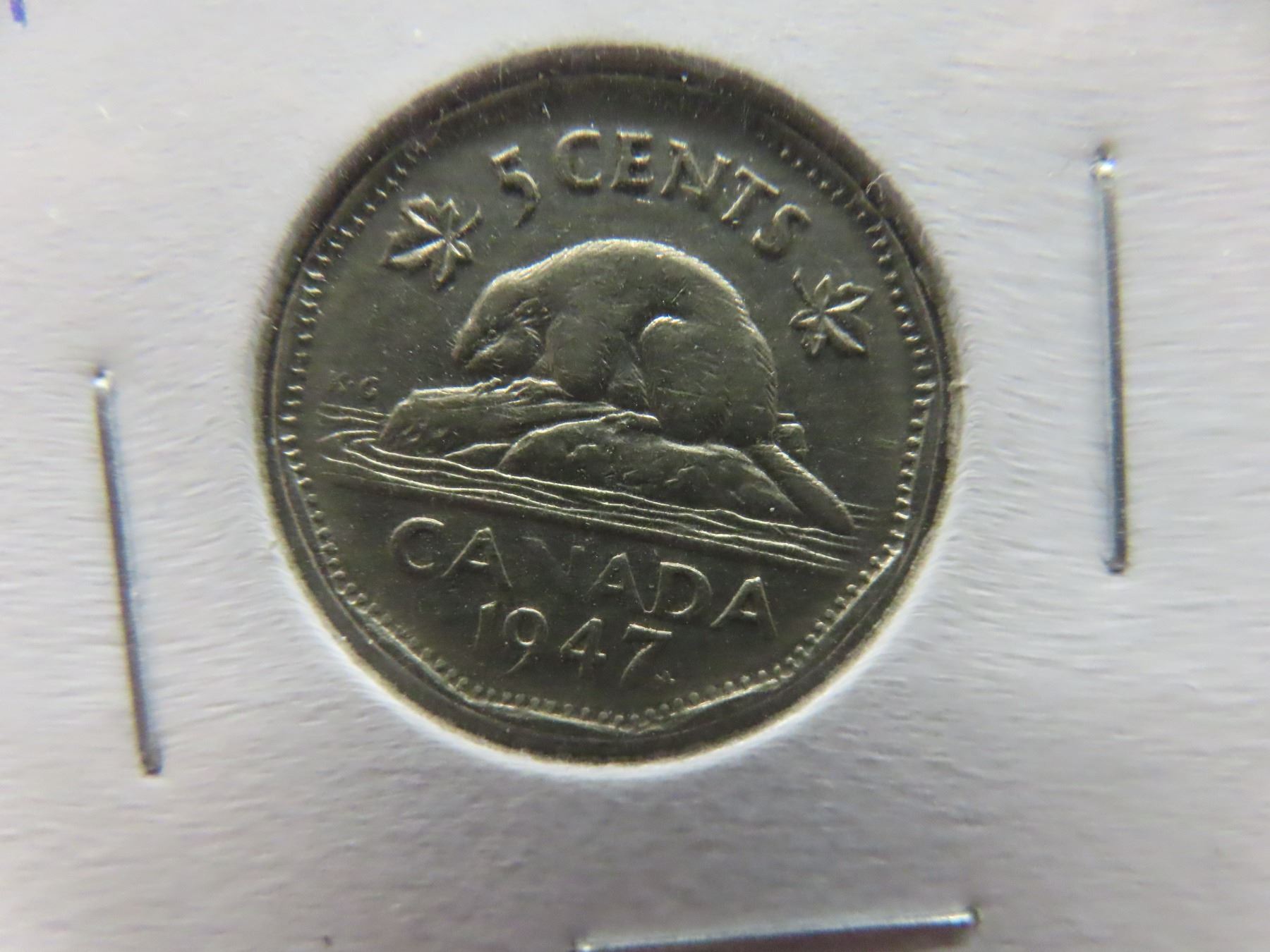 Set of Four Canadian Nickels: 1947, 1947 Maple Leaf, 1948, 1949