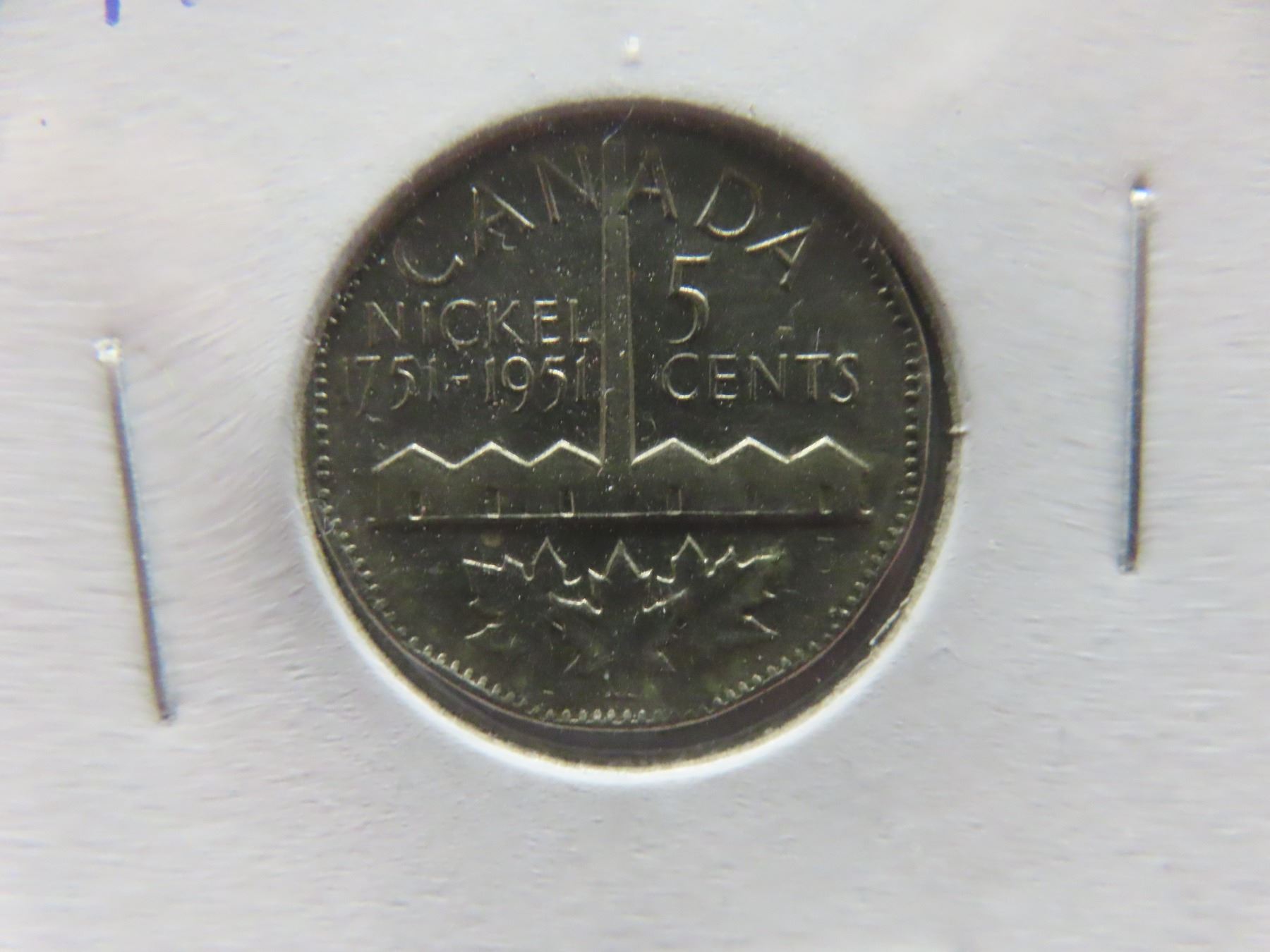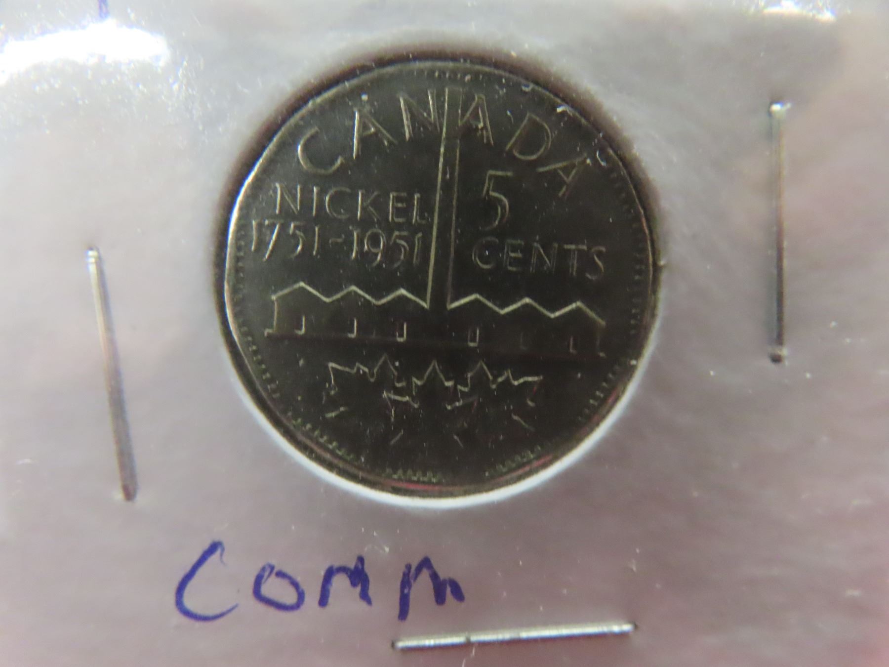 Set of Four Canadian Nickels: 1949, 1950, 1951 Commemorative, 1951 Commemorative