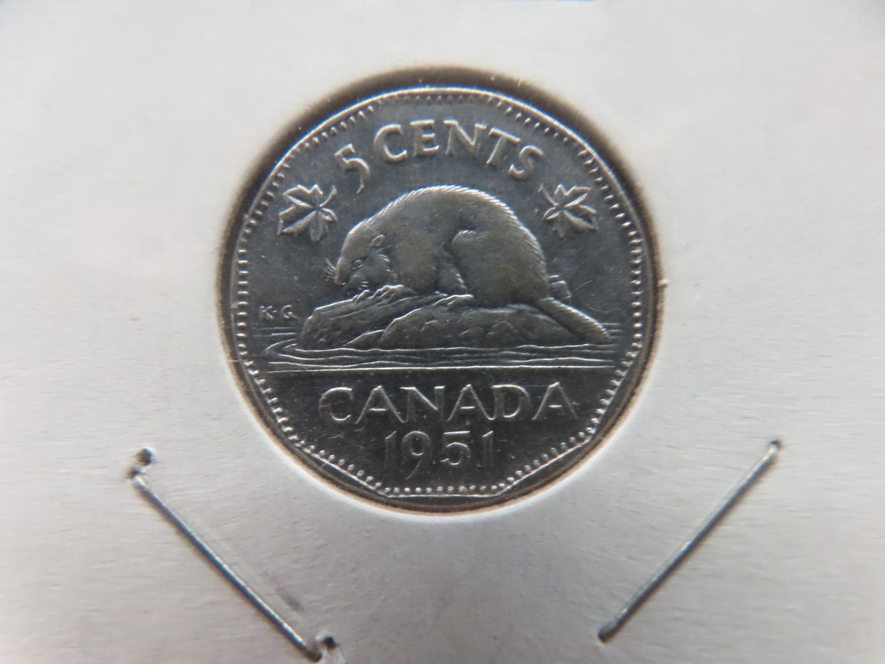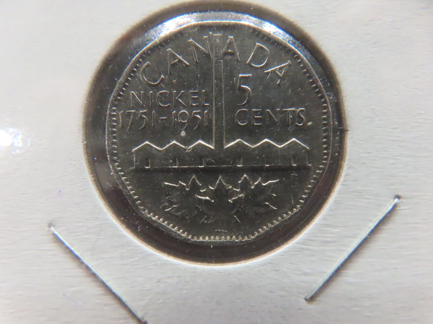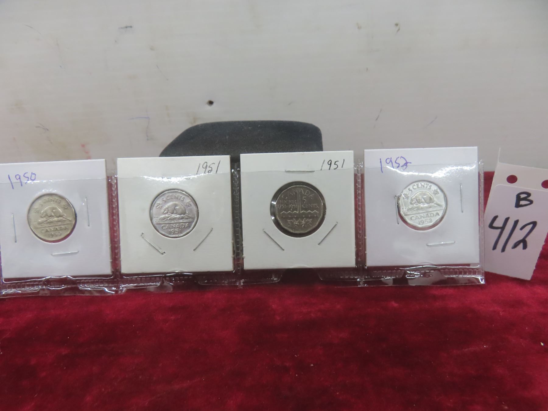 Set of Four Canadian Nickels: 1950, 1951, 1951 Commemorative, 1952