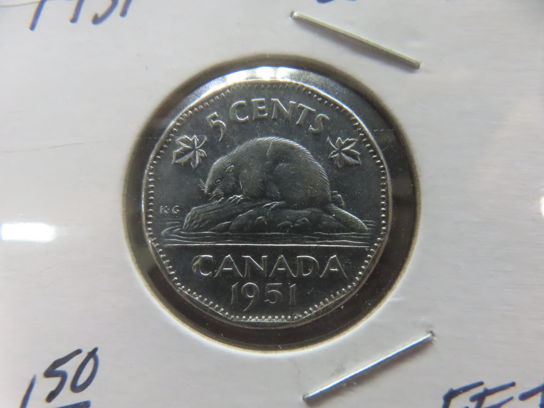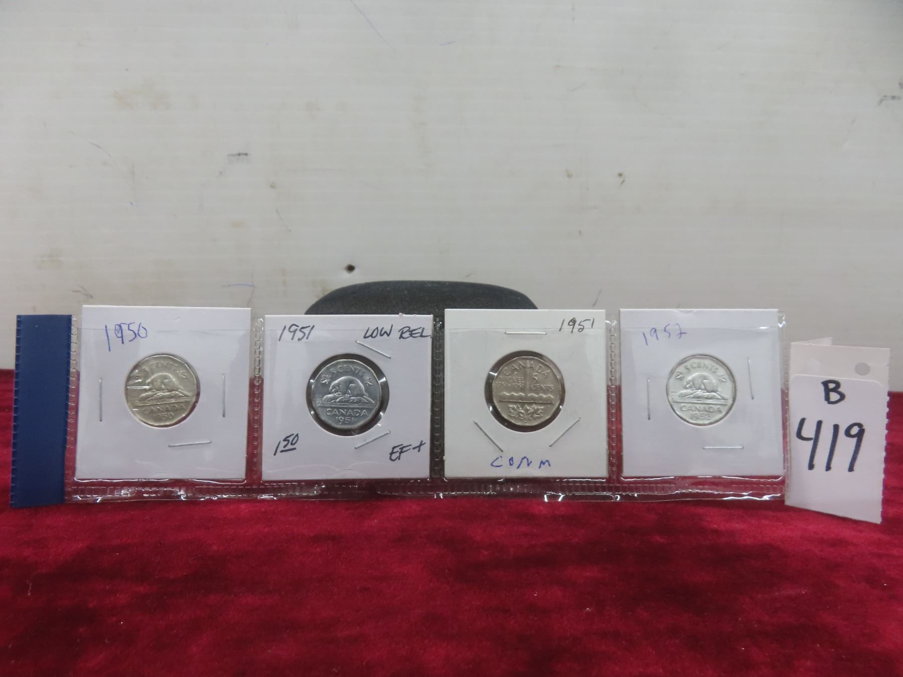 Set of Four Canadian Nickels: 1950, 1951, 1951 Commemorative, 1952