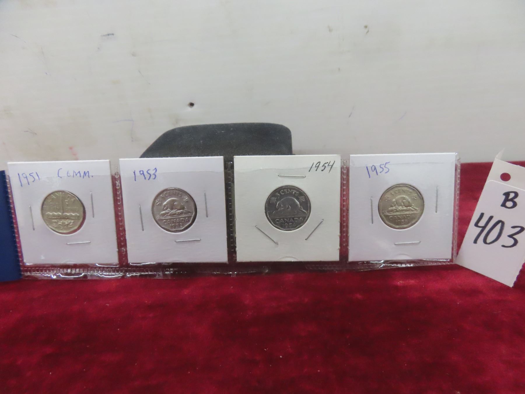 Set of Four Canadian Nickels: 1951, 1953, 1954, 1955