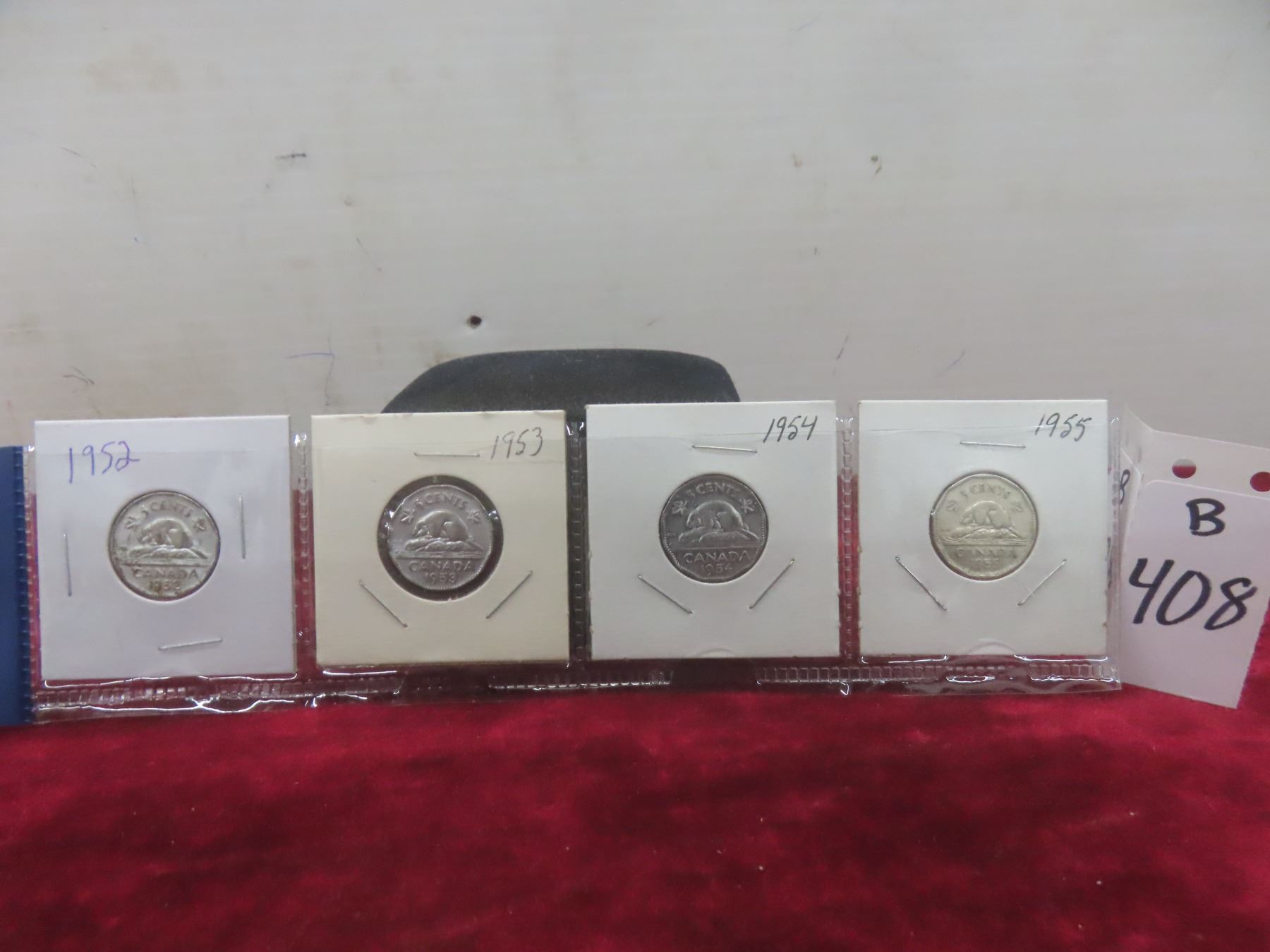 Set of Four Canadian Nickels: 1952, 1953, 1954, 1955