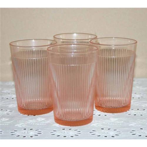 Presenting a fabulous set of Homespun fine rib Pink Depression Glass 9 ounce Tumblers made between 1939 and 1949 by Jeannette Glass Company. This beautiful vintage Depression glassware Tumblers stand 4 ¼ of an inch tall and are all in MINT condition. Priced and sold as a set of four. Check out the matching Homespun Dinner Plates Item #12128