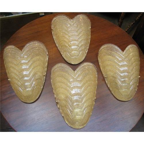 A set of four hand blown Murano glass sconces with polvero d'oro (gold leaf) scattered throughout.